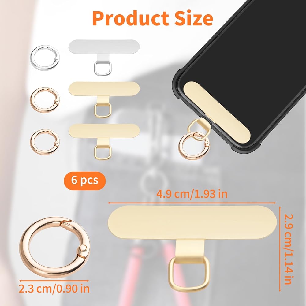• Universal-Size: The phone strap replacement part measures about Fixed piece: 4.8x2.9cm ( 1.89 x 1.14 inch ), Ring: 2.3x2.3cm (0.91 x 0.91 inch); ring diameter 3.5mm (0.14 inch). Phone tether tab can be applied to most lanyards and mobile phone cases. Metal cell phone tether patch allows you to easily change your mobile phone case