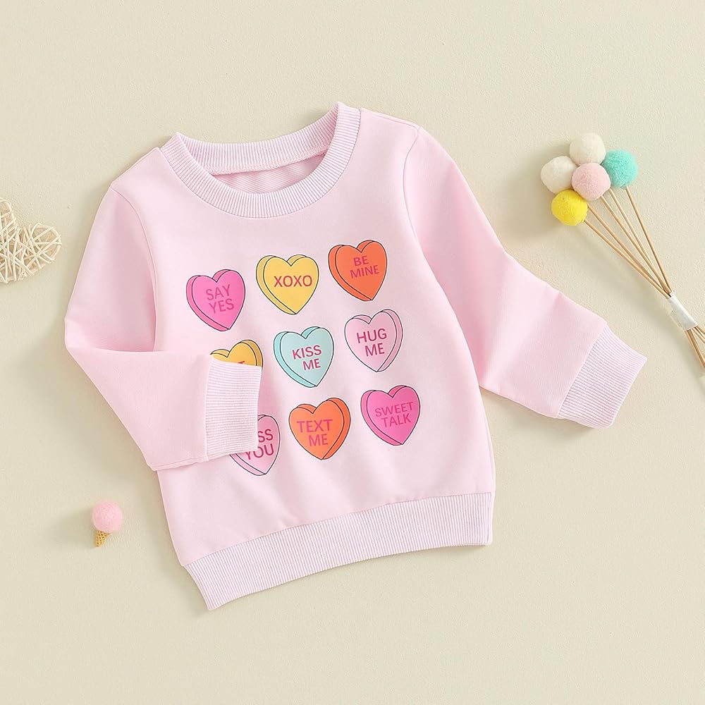 شملت الحزمة: Toddler Girl Valentine Shirt *1. تعتبر بلوزات طفلة طويلة الأكمام مباراة مثالية مع الجينز أو السراويل غير الرسمية ومعطف