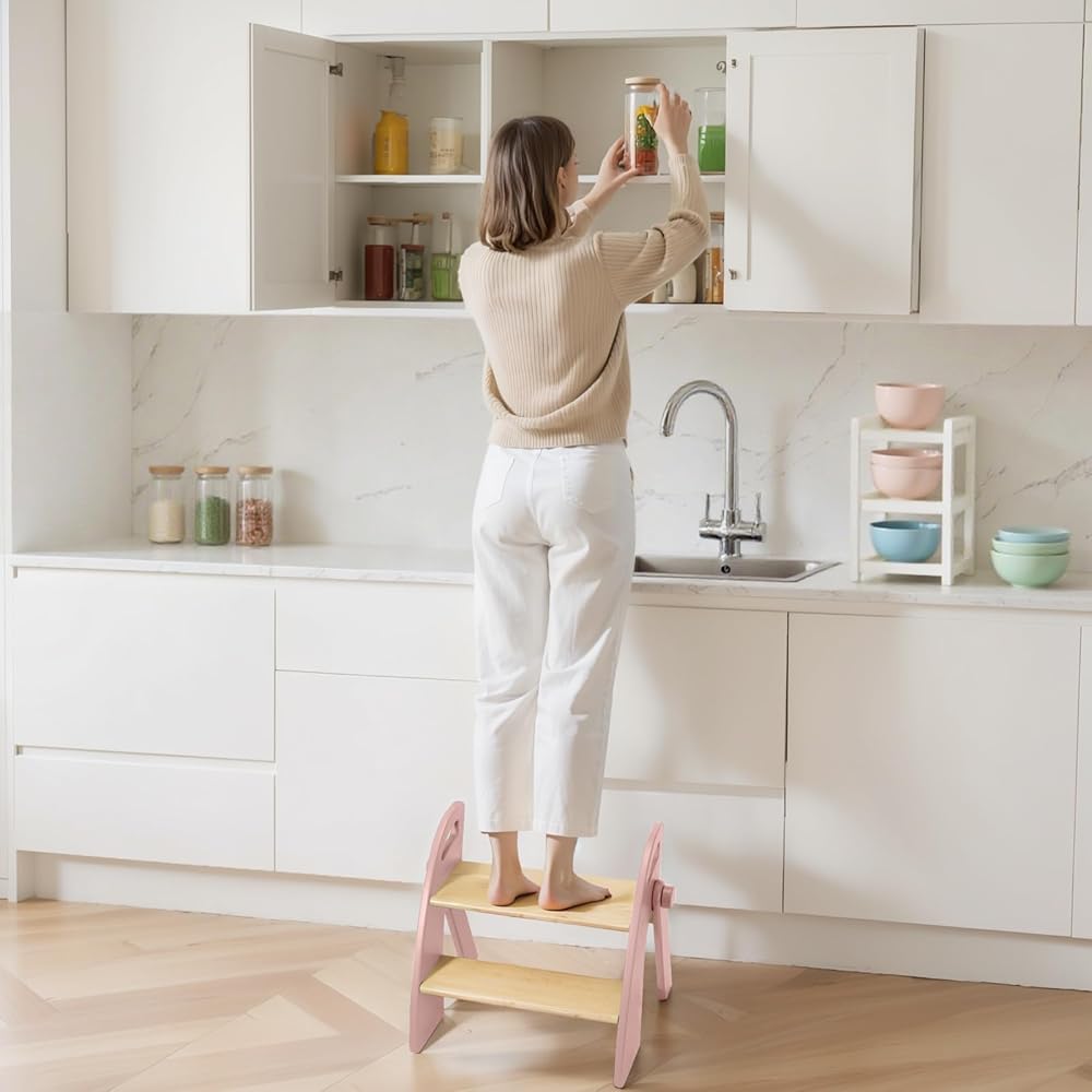 • برج الوقوف المكون من خطوتين عبارة عن قطعة متعددة الاستخدامات ومتعددة الوظائف مصممة ليس فقط كبراز المطبخ الصغير ولكن أيضًا كبراز تدريب على القعادة ، وخطوة حوض الحمام ، وسلالم بجانب السرير. يوفر هذا البراز الصغير منصة آمنة وداعمة لطفلك لتطوير الاستقلال والنمو بثقة ، مما يساعدهم على التغلب على كل مرحلة من مراحل تطورهم! كما أنه يجعل من السهل على طفلك الصغير الوصول إلى الرفوف أو الأرائك أو الأسطح العليا الأخرى.