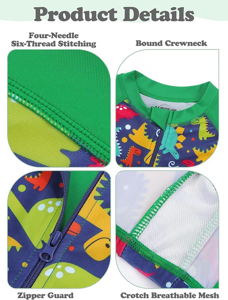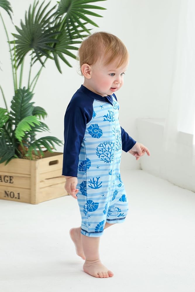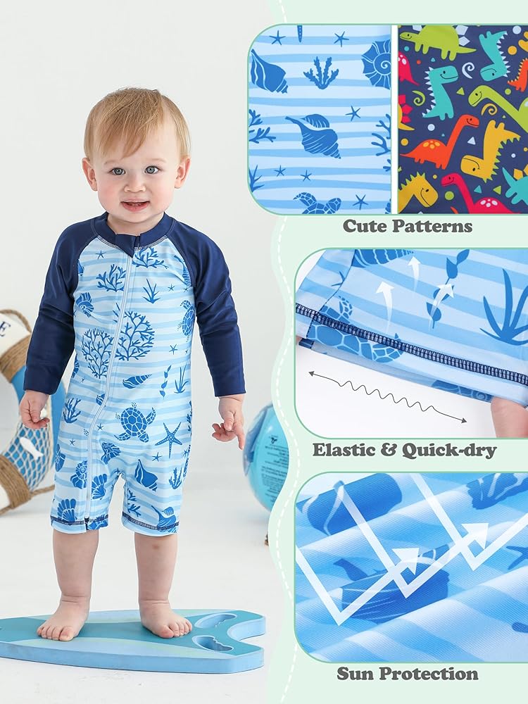 Thoughtful Design: With meticulous craftsmanship, our baby boys 1 piece long-sleeve sun protection rash guards feature four-needle six-thread stitching, durable edges, and a full-front zipper for easy dressing; the zipper guard protects your baby's delicate skin, making diaper changes convenient