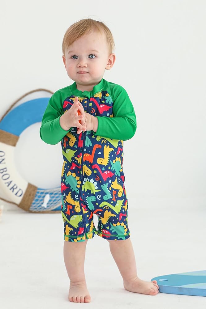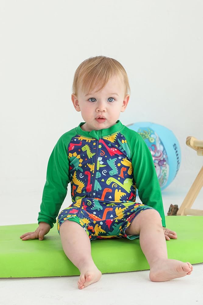 Sun Protection: Made with fabric that offers sun protection defense, these baby boys 1 piece long-sleeve sun protection rash guards help shield your child's sensitive skin from sunshine, whether at the beach or pool; it's a thoughtful choice for parents seeking both style and protection during sunny outings