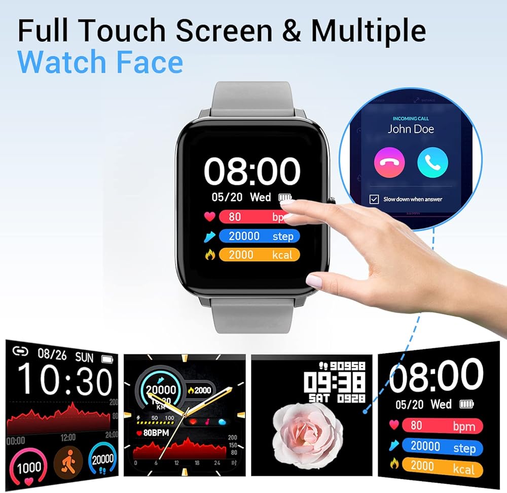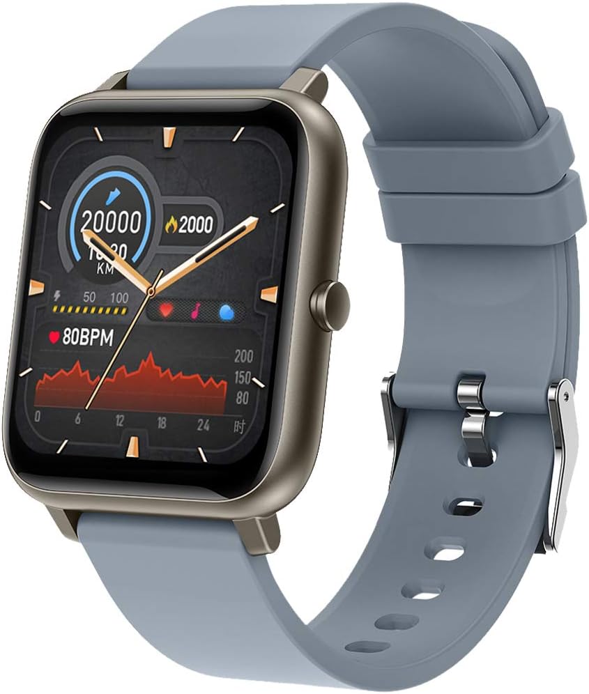 ساعة ذكية EBAKIN لتتبع اللياقة البدنية 1.4 بوصة شاشة لمس كاملة IP67 مقاومة للماء ضغط الدم ونسبة القلب الدم الأكسجين الرياضية (رمادي)