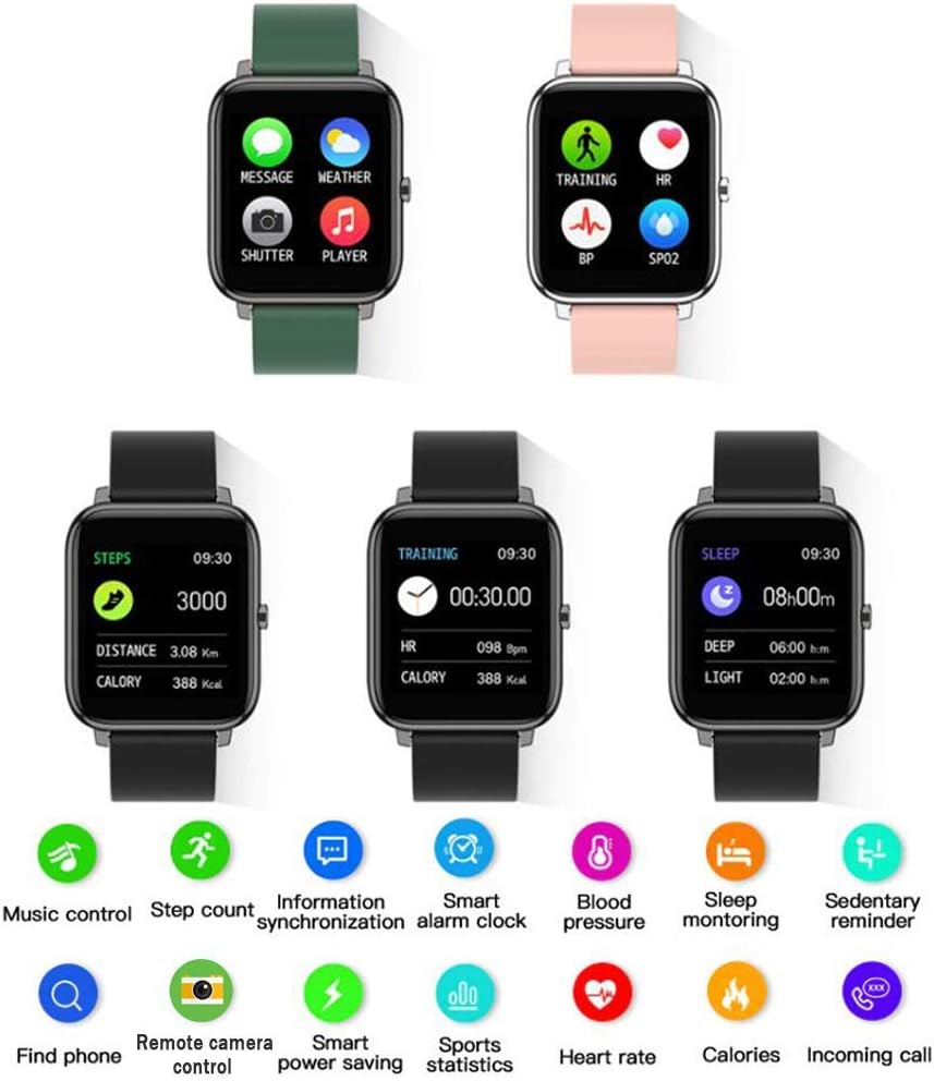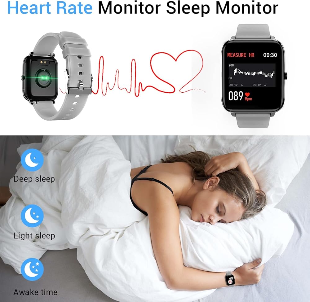 • ⌚【مراقبة الصحة】ساعة ذكية تراقب تغير معدل ضربات قلبك وإمساكها في الوقت الحقيقي. ويمكن وضع النوم العلمي تسجيل نومك الكامل، مما يساعدك على فهم صحتك بشكل أفضل وعمل تعديل معقول لنمط حياتك