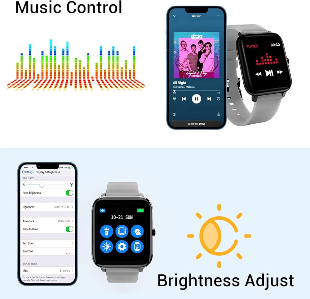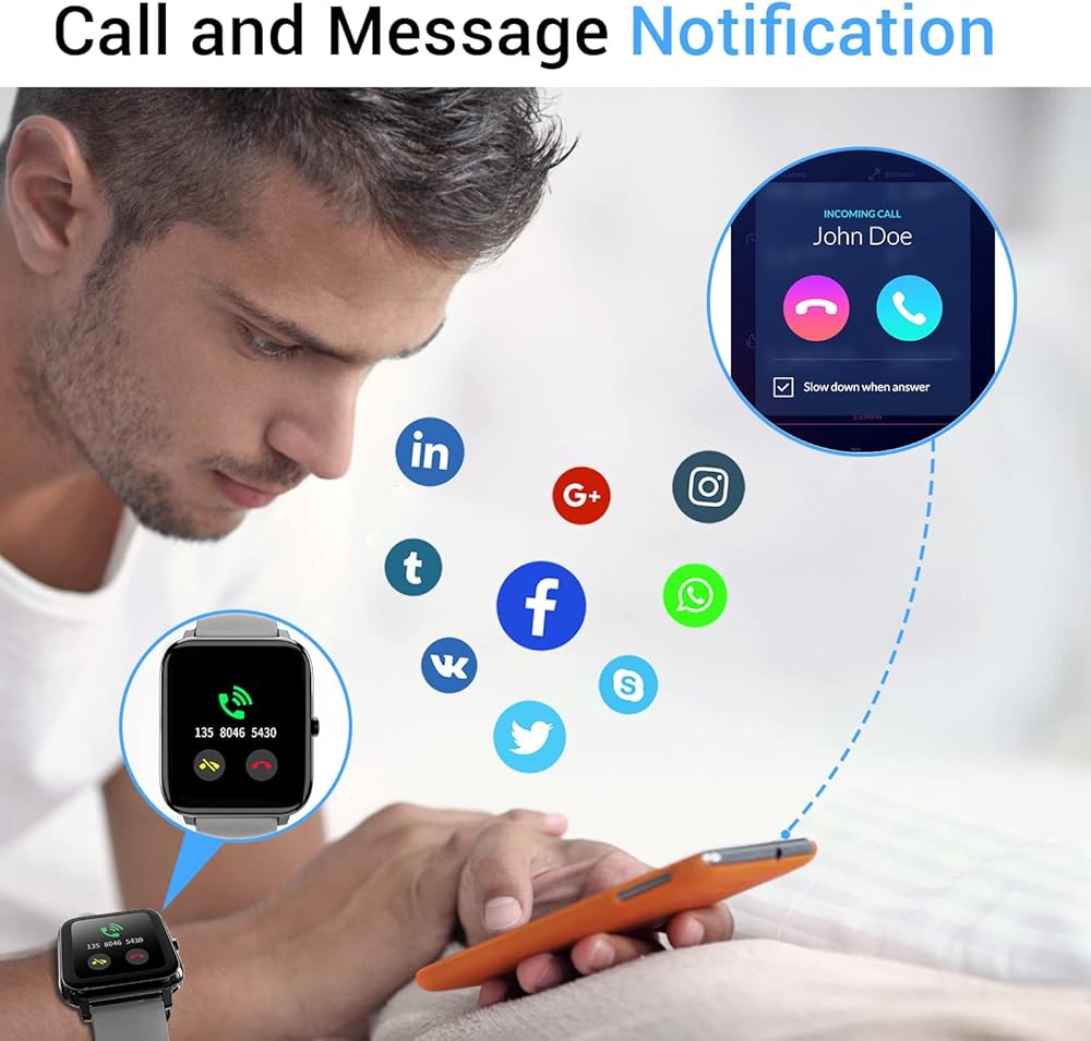 • ⌚【تذكير بالمعلومات】من خلال توصيل الساعة الذكية بالهاتف الذكي، يمكن عرض معلوماتك على الساعات الذكية بشكل متزامن، مثل المكالمات الواردة، والرسائل القصيرة، والفيس بوك، وواتس اب، وتويتر، ولينكدين، وإنستغرام، وسكايب، وجي ميل وما إلى ذلك، لن تفوت الأخبار المهمة. المزيد من الميزات العملية مثل التذكير الجلي، وعداد الخطوات، والتحكم في الكاميرا، وجهاز التحكم في الموسيقى، والتحقق من الطقس، والعثور على الساعات الذكية، وضبط السطوع، ومنبه الاهتزاز. وما إلى ذلك.