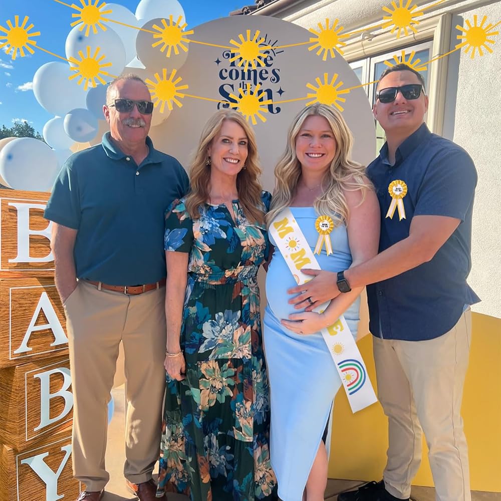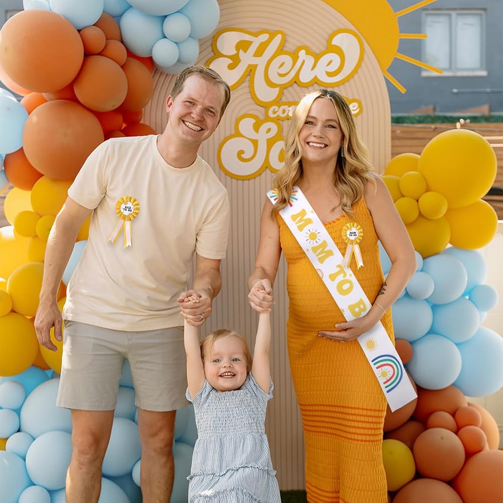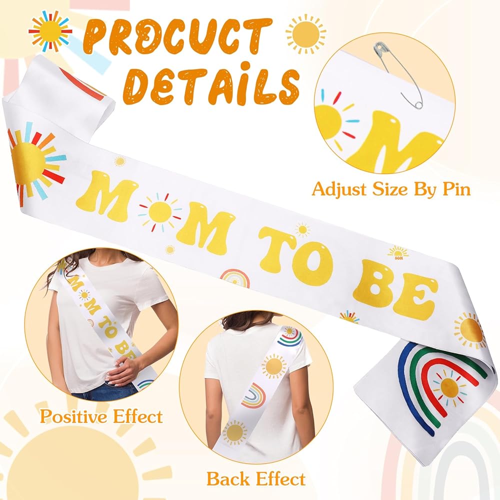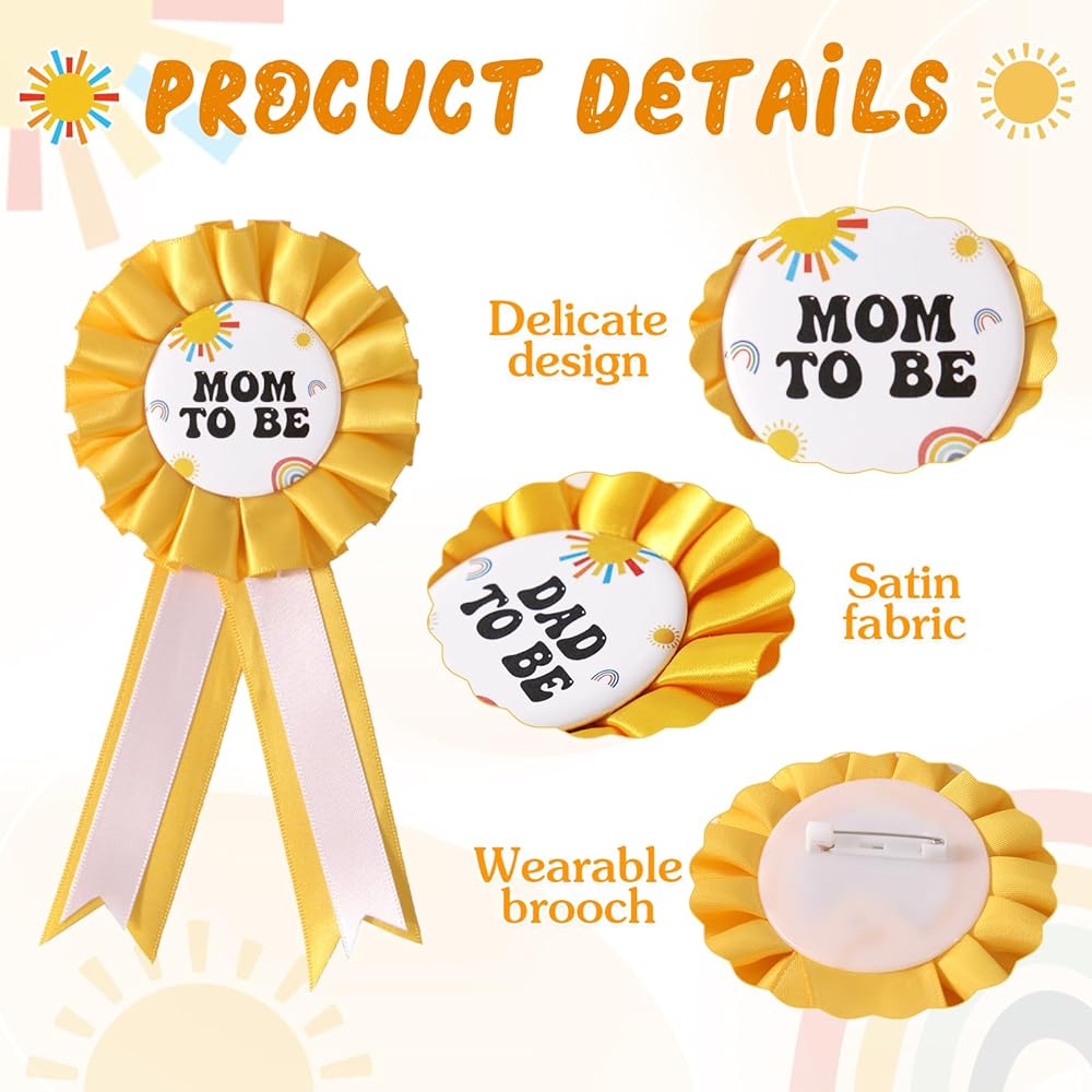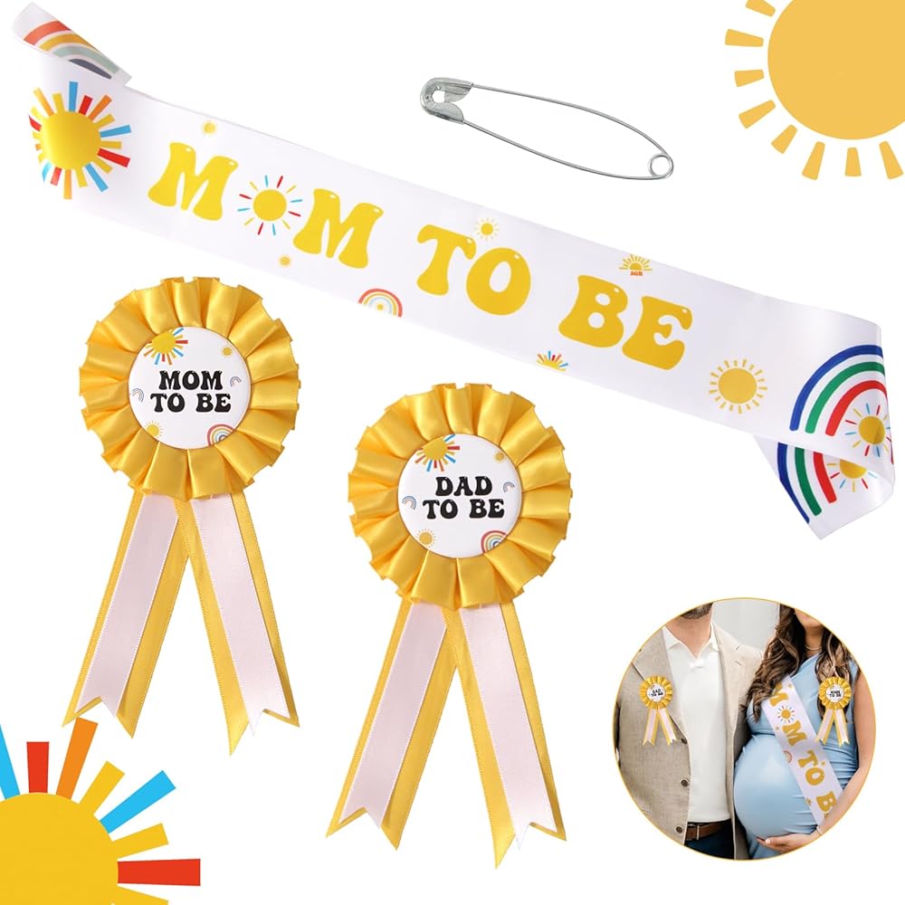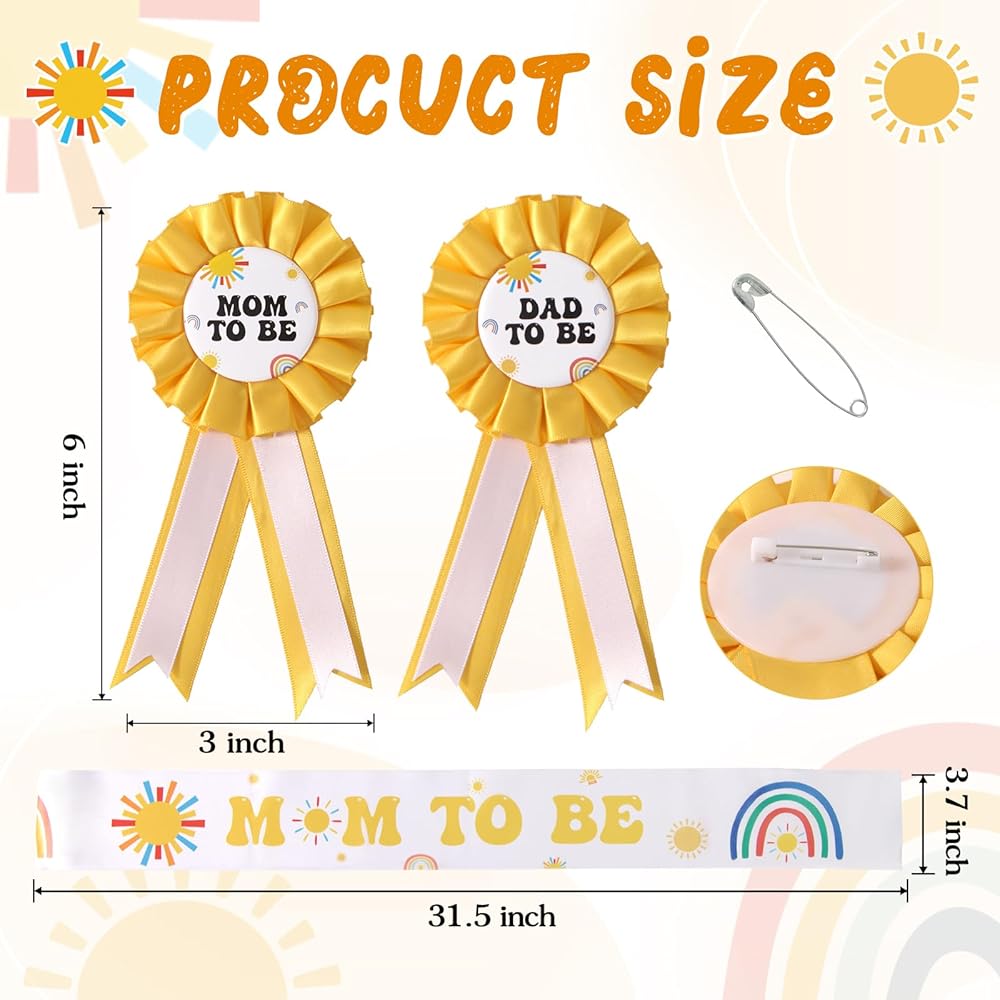 Baby in Bloom Baby Shower Decorations: Included in the package 1 pc mom to be sash, 1 pc mom to be pin, 1 pc dad to be pin, suitable for celebrating the arrival of the baby and bring an unforgettable memory to everyone