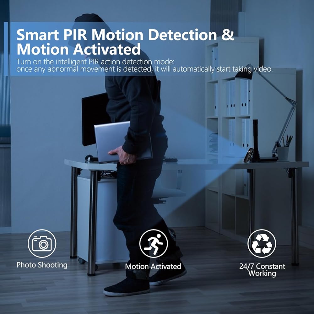 اكتشاف حركة PIR الذكية: يتم تنشيط المستشعر المدمج المدمج عند اكتشاف الحركة ، مما يضمن لك التقاط كل حدث دون فقد لحظات مهمة.