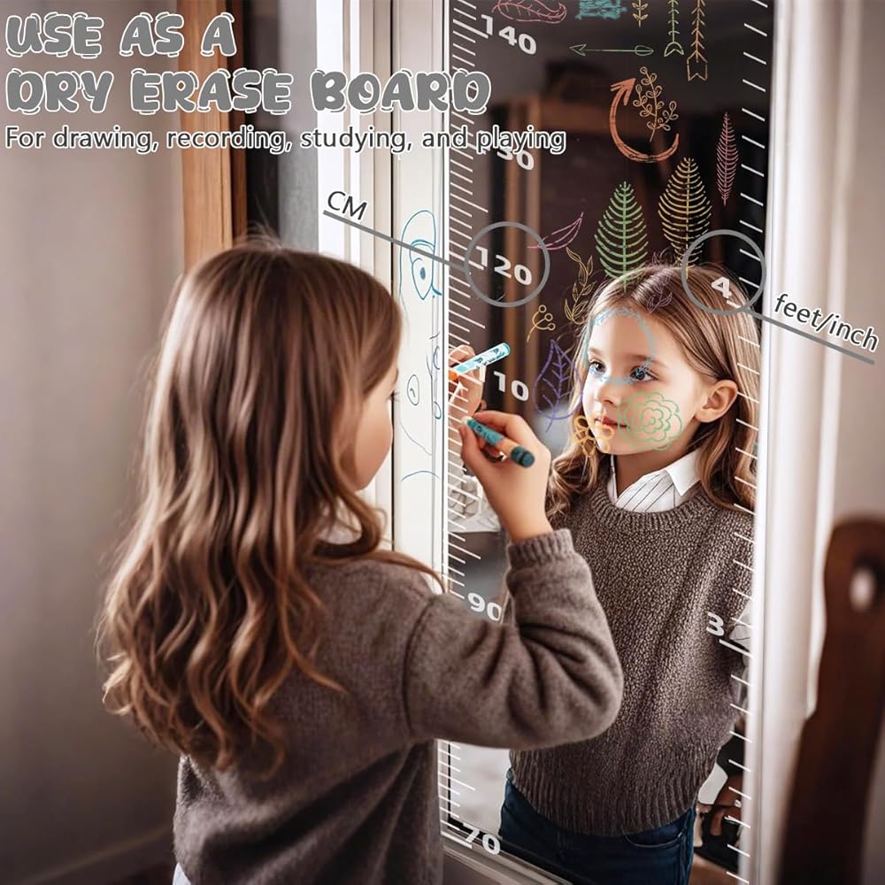Multipurpose Use: More than a growth chart. Versatile for drawing, learning, and playing, it transforms into full-body mirrors, a height tracker, or a creative dry erase board