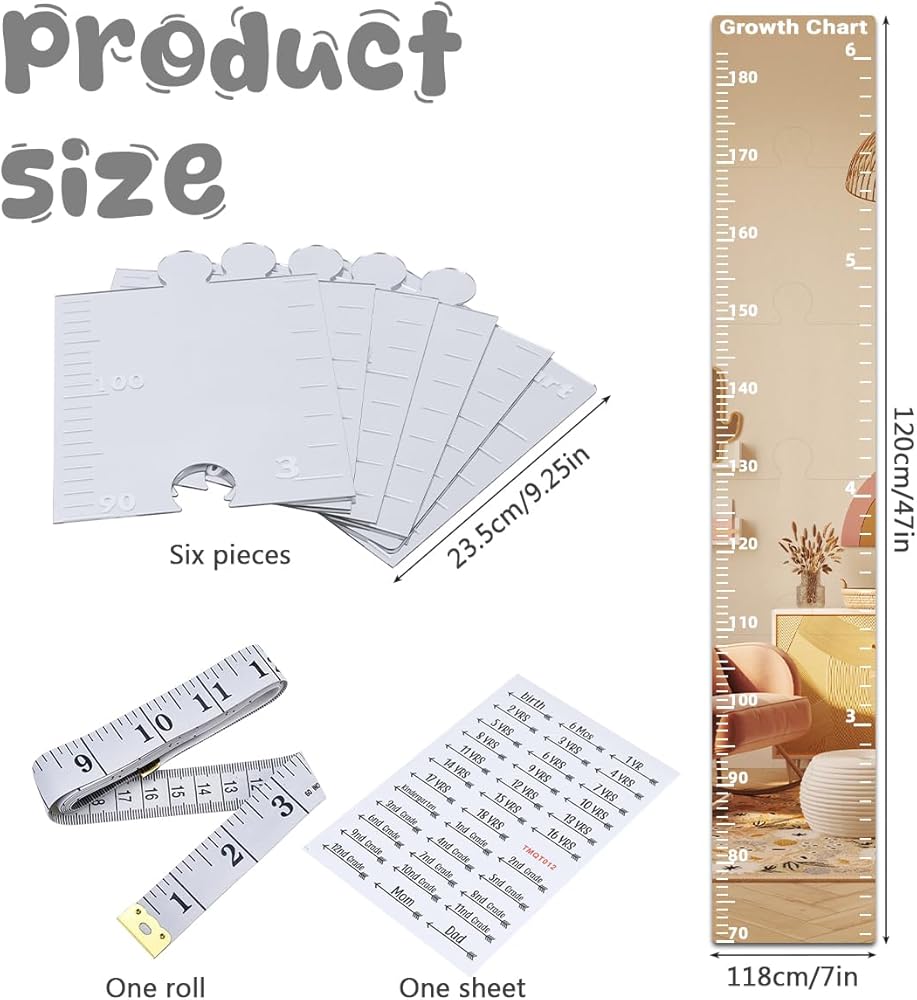 Quick Installation: Our Mirrored Growth Chart makes measuring your child's height a breeze. With a sturdy adhesive backing, installation is easy: simply clean surfaces and peel and stick. Plus, the mirrored design adds a touch of elegance to any room