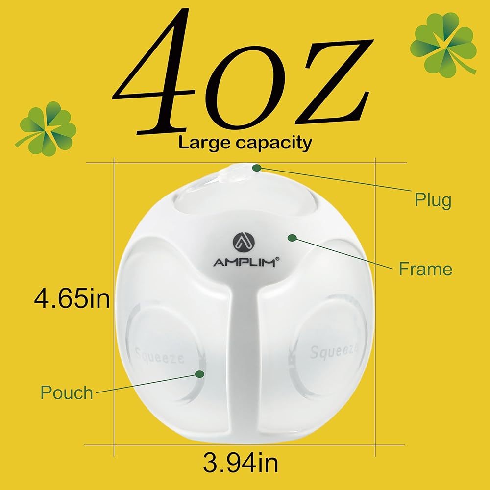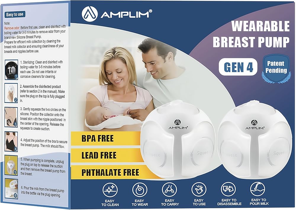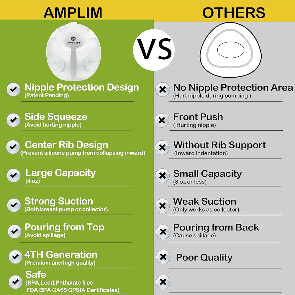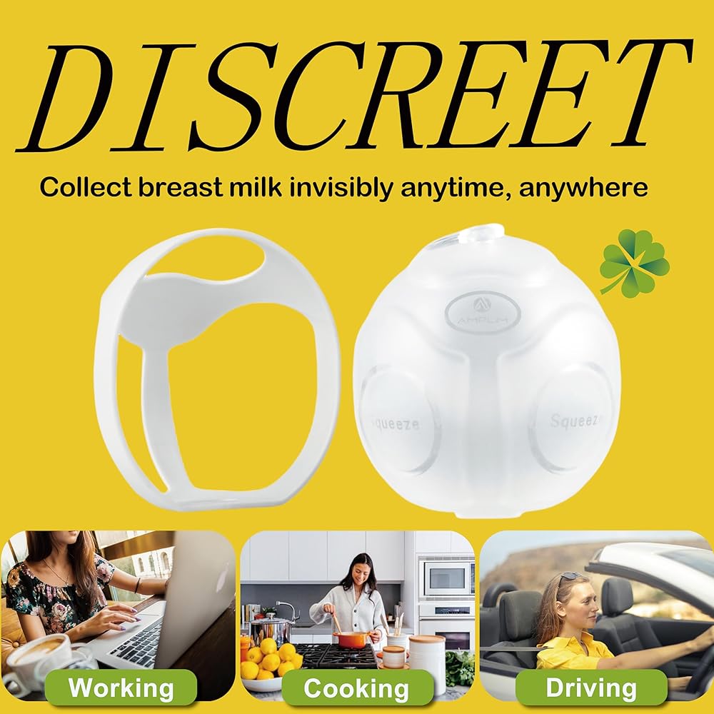 This Amplim Manual Wearable Breast Pump can collect up to 4 ounces of milk at a time and give you the ability to control the suction it uses. Whether you need to relieve your engorged breast or are in a situation where the power source is not available, this Amplim Manual Wearable Breast Pump is designed for you. It's made from 100% soft silicone and PP all you have to do to attach it to the breast is to squeeze the two circles on the silicone, Position the collector onto the breast skin with the nipple positioned in the center of the opening. Release the squeeze to create suction, then Adjust the position of the bra to secure the breast pump. The milk should flow until you've sufficiently pumped. This Manual Wearable Breast Pump does not have mechanical parts or motors. It only needs your hand to create the suction on the unit to get it to work. Breast pumping should not be painful or too uncomfortable. More suction using an electric pump will not make more milk and can cause breast or nipple damage. The unit is compact, lightweight, easy to travel with, and makes pumping on the go much easier. Perfect for travel and it fits easily in a baby bag. A must-have when on the go and didn't know if one could find an electrical outlet. Use silently, discreetly, and quickly when needed. Easy to clean with tap or boiling water. The stopper is designed to prevent milk spills.