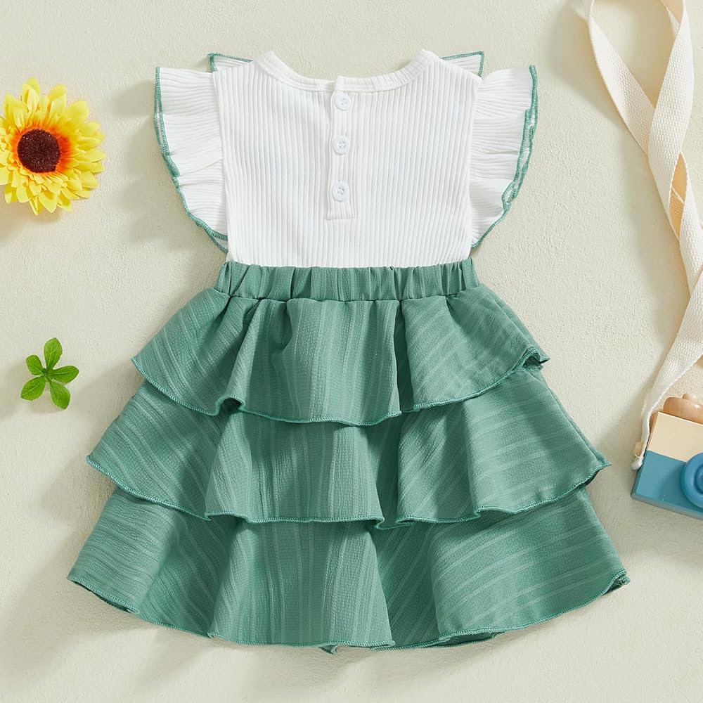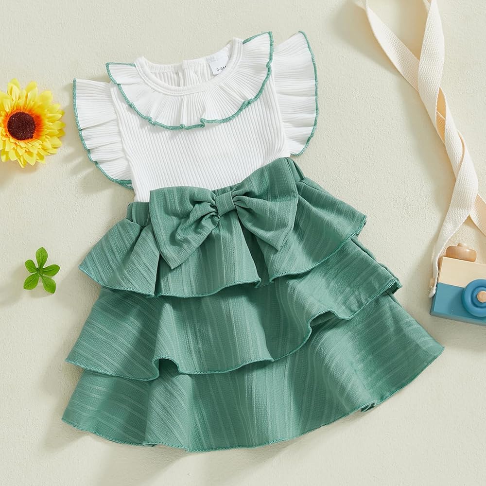 Baby Girl Summer Dress Casual Short Sleeve Doll Collar Bow Front Dress Toddler A-Line Dress
