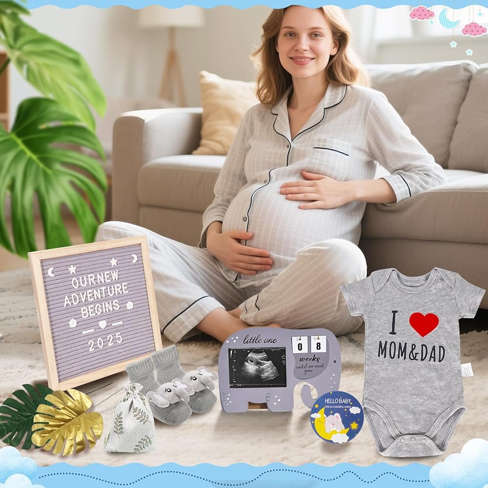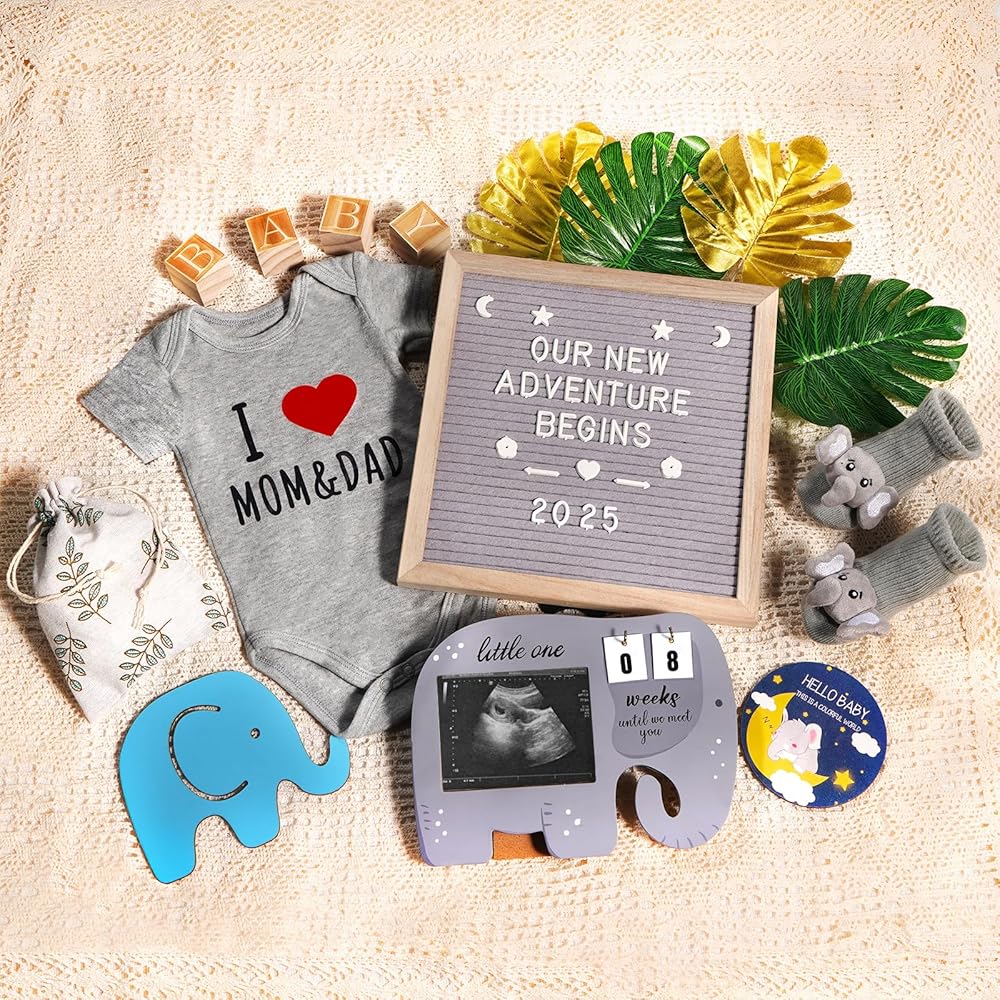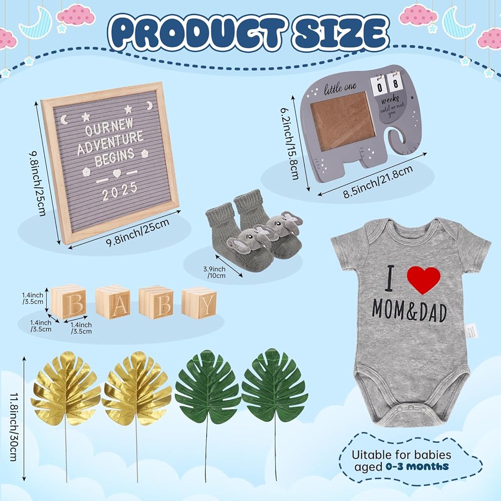 ❤ 【مفاجأة أمي مع أفكار إعلان الطفل】-هذا الكشف عن الحمل مجموعة تشمل 1* لوحة رسائل عالية الجودة ، 1* bodysuit مريحة ، 1* علامة ، 4* كتل خشب الأطفال المصنوعة يدويًا ، 4* عباد الشمس الجميلة و 4* كروم بأوراق. سيكون بمثابة تذكار مثالي لتسجيل اللحظات المستقبلية المليئة بالذكريات!