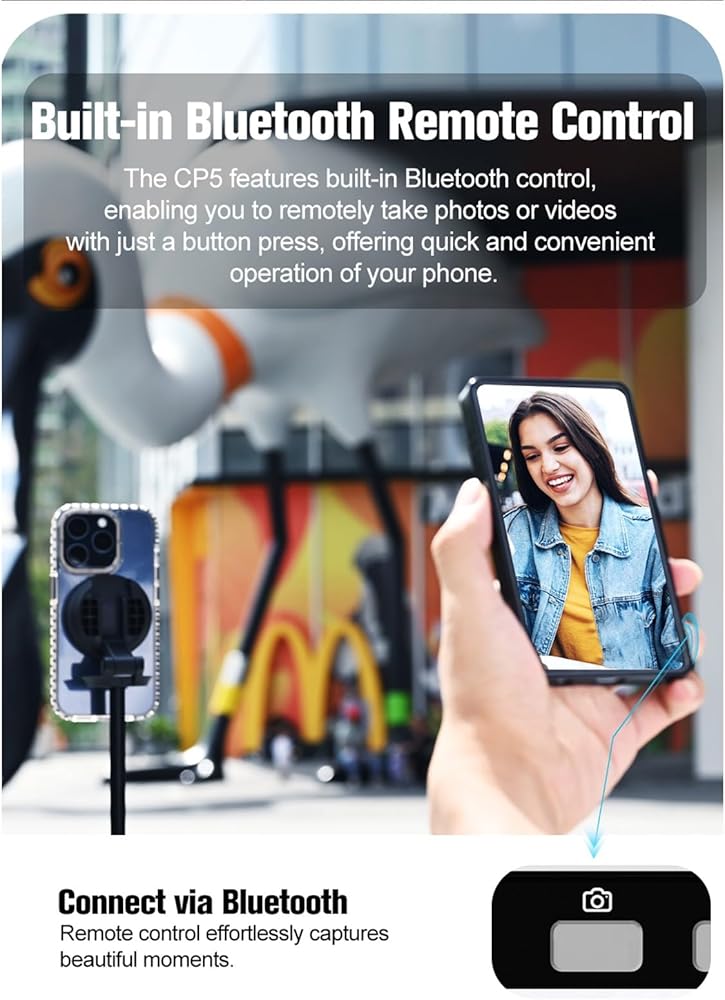 يحتوي CP5 على التحكم في Bluetooth. يمكنك التقاط صور أو مقاطع فيديو عن بعد بالضغط على زر ، والذي يوفر تشغيلًا مناسبًا لكاميرا هاتفك