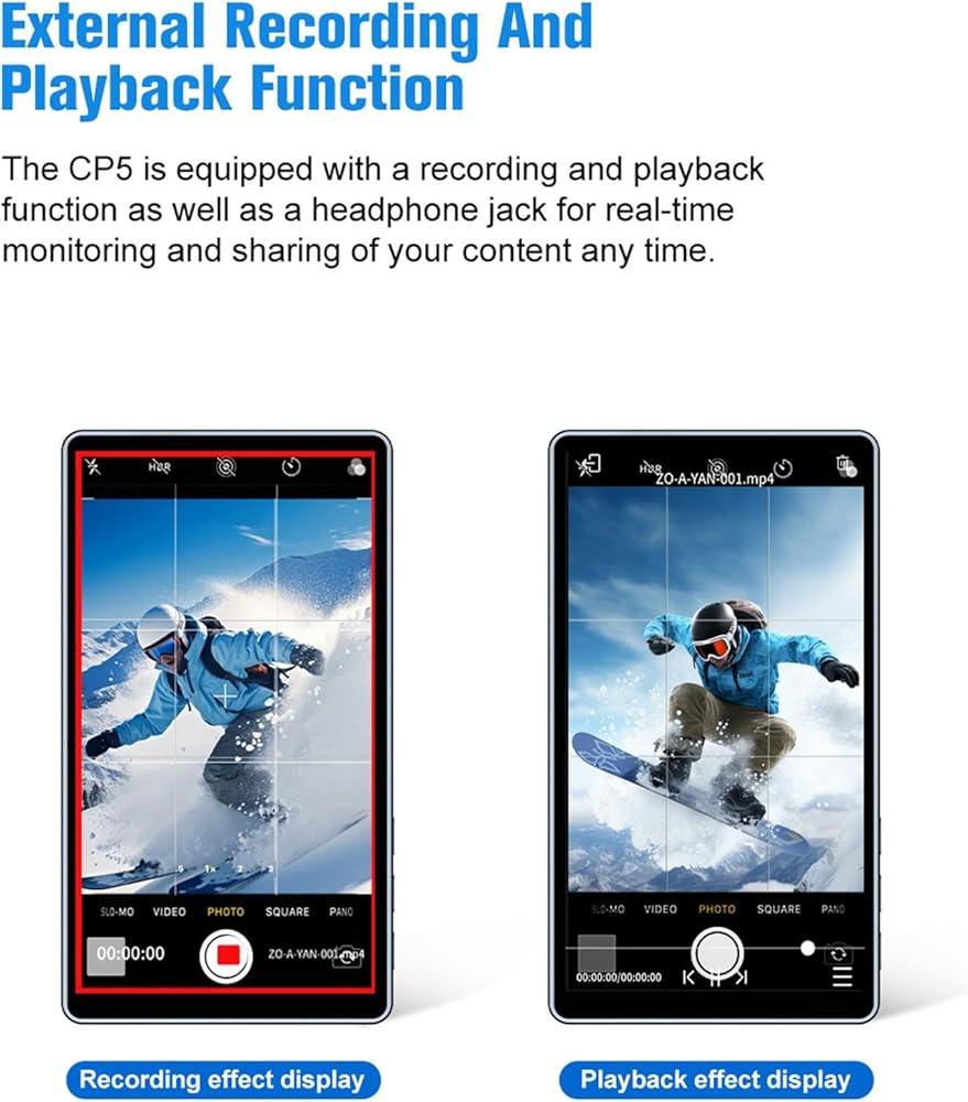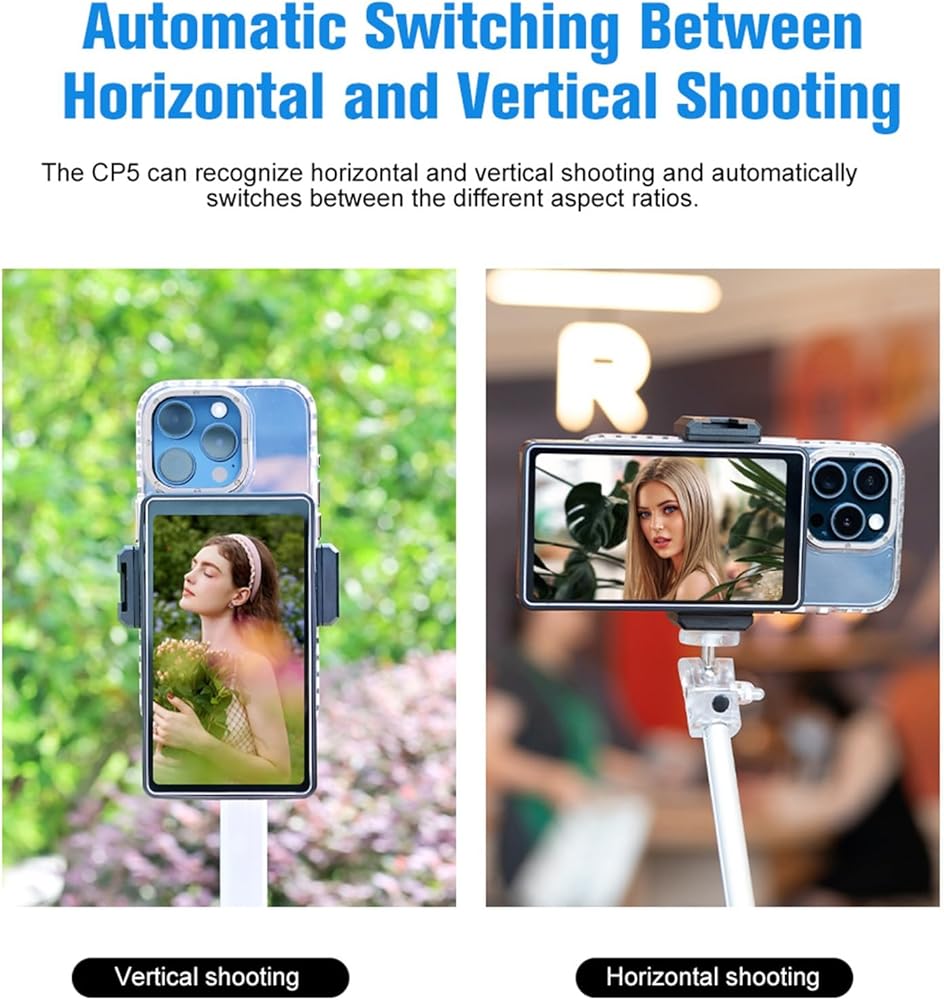 ابق على رأس اللقطة الخاصة بك مع المزامنة في الوقت الفعلي بين شاشة CP5 والكاميرا الخلفية لهاتفك. قل وداعا لصور شخصية ضبابية وزوايا صعبة. ضمان الوسائط عالية الجودة في أي وقت وفي أي مكان. إنه مثالي لصور شخصية ، مدونة ، تدفق ، ركوب الدراجات ، صور المجموعة ، إلخ