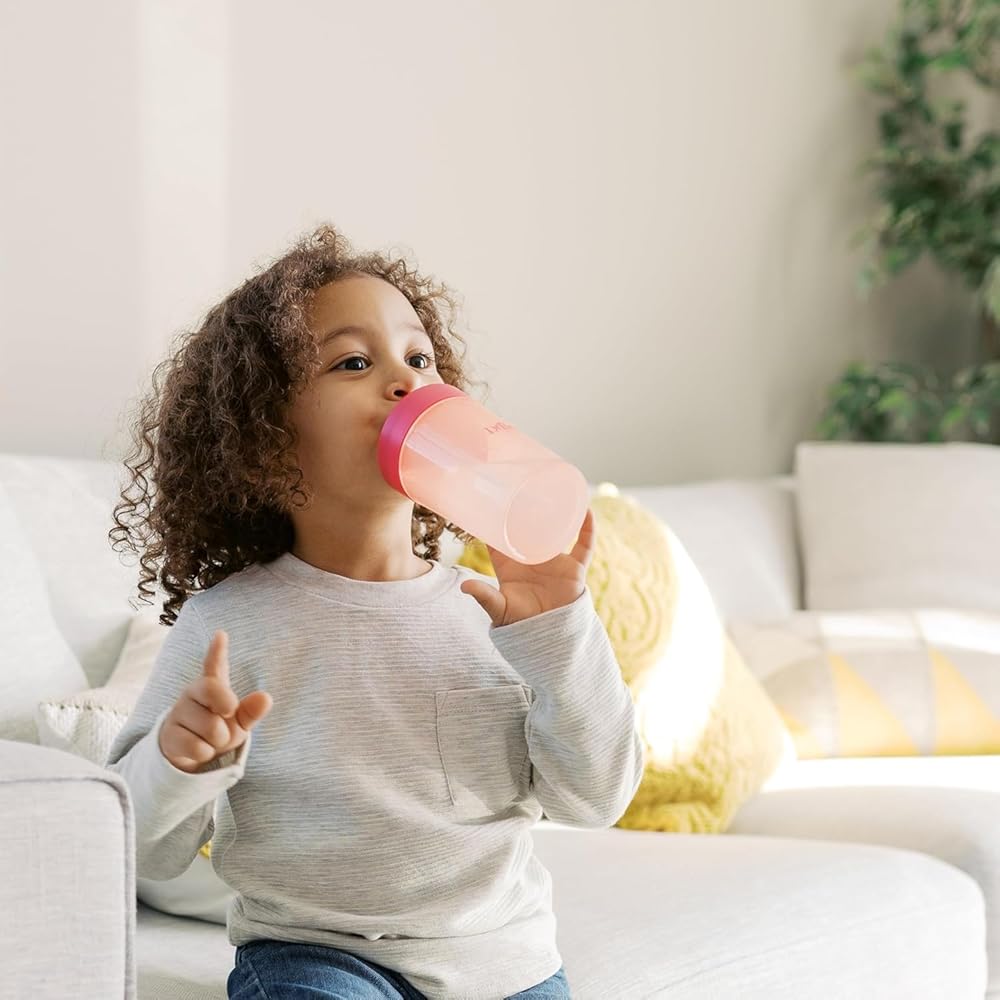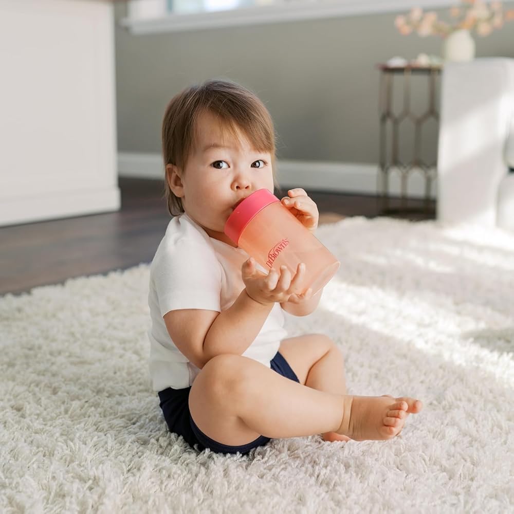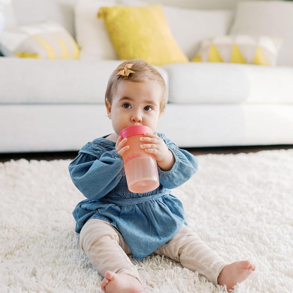 معالم الدكتور براون القش إلى مجموعة 360 درجة كوب ، كأس تدريب قابلة للتحويل مع قش سيليكون قابلة للتبديل و 360 درجة كوب ، المرجان الوردي ، 10 أوقية/300 مل ، BPA مجاني ، 9M+، 2 عبوة