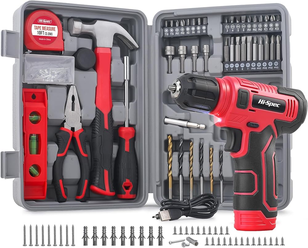 مجموعة مثقاب لاسلكية عالية المواصفات 8 فولت ومجموعة أدوات تشغيل - سائق مثقاب كهربائي USB قابل لإعادة الشحن، مجموعة أدوات منزلية مدمجة مع ملحقات، أحمر، مثالي لعشاق الأعمال اليدوية