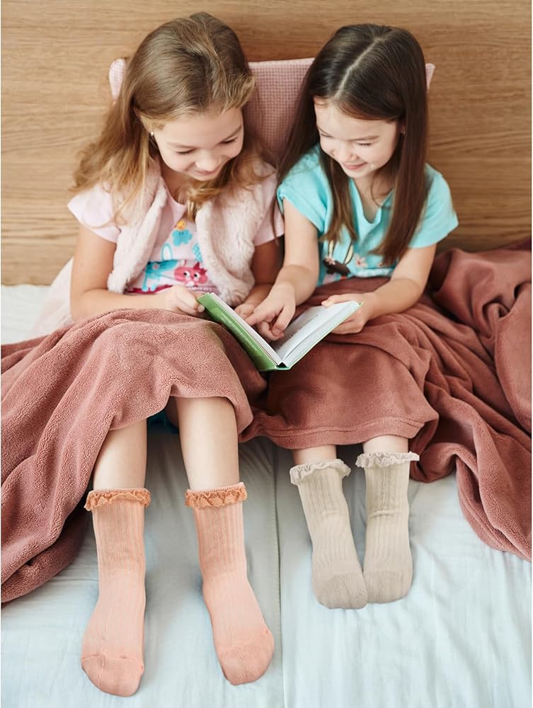 【Anti-slip Design】 Ensure your toddler's safety with our specially designed non-skid baby ruffle socks with grips. Each ruffle sock for toddler features a robust gripping material on the bottom to prevent slips and falls,allowing your child to play safely and freely all the day
