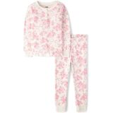 PAJAMA TOP: Allover rose and bow floral print, rib-knit crew neck, half-button placket, long sleeves with rib-knit sleeve cuffs