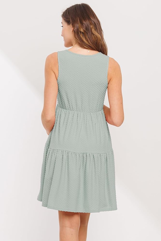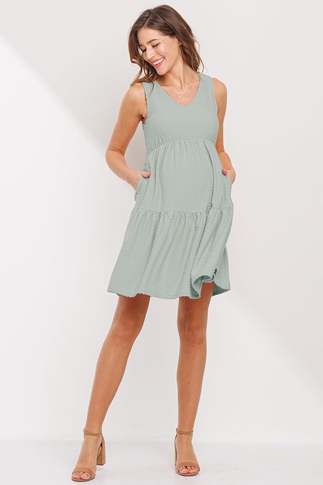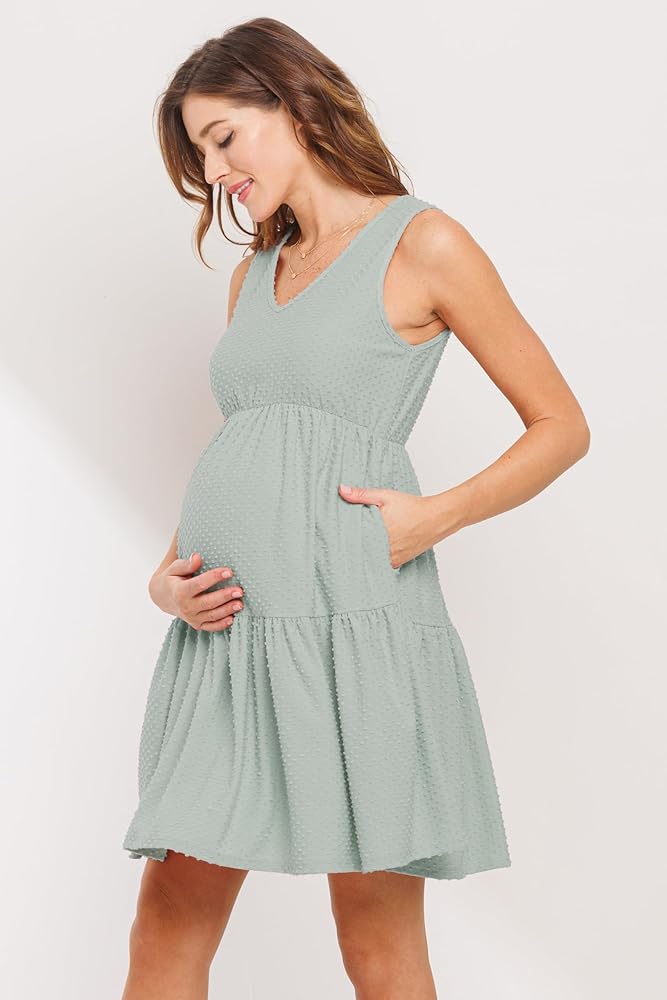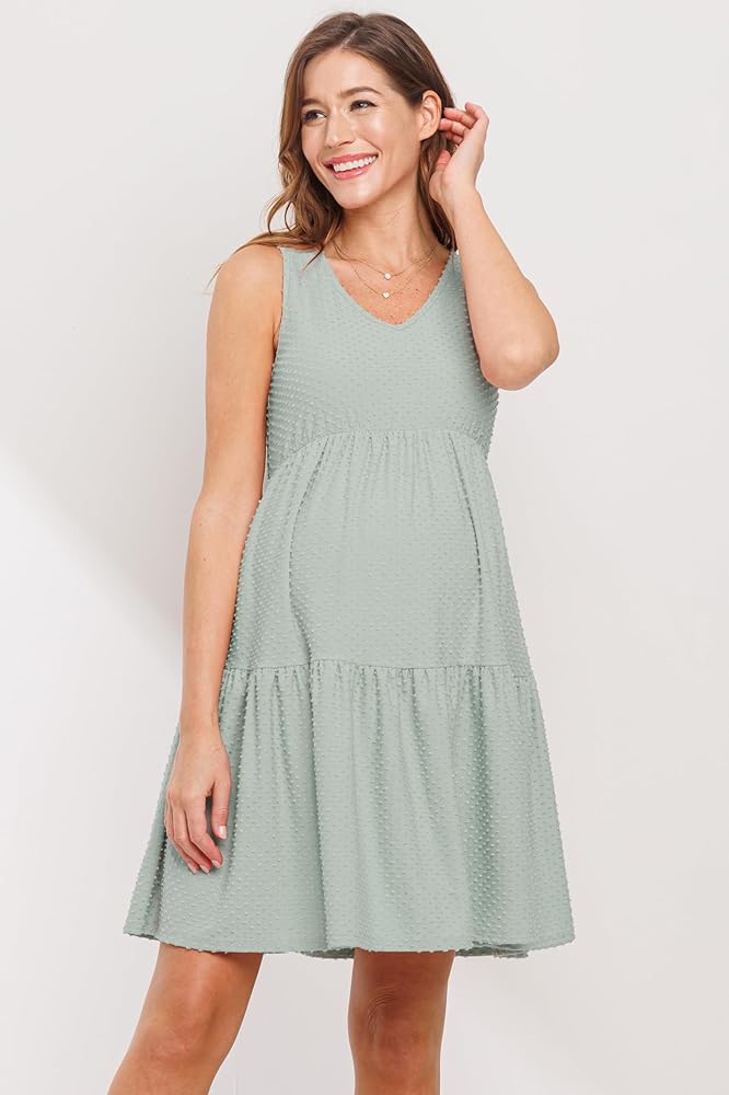 Feel confident and stylish in our Textured Polka Dot Maternity Mini Dress! The swiss dot fabric and flowy design will keep you cool and comfortable during pregnancy, while the empire waist accentuates your beautiful bump. Perfect for any casual occasion.