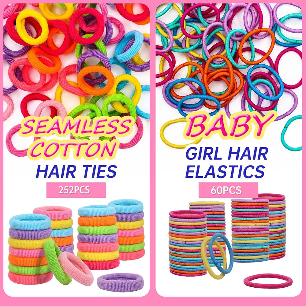 تشمل الحزمة: 252pcs Cotton Toddler Hair Ries ، 60pcs علاقات الشعر الصغيرة. 8pcs مقاطع مخلب زهرة مصغرة ، 8pcs مقاطع شعر معدنية مقطوعة ، 8pcs مقاطع الشعر التمساح تصفيف الشعر ، مجموعة 3pcs أدوات الشعر.