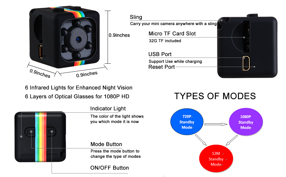 تخزين الحلقة: عندما تكون البطاقة ممتلئة ، تقوم كاميرا Mini Spy تلقائيًا بتنشيط تخزين الحلقة ، وتكتب بيانات قديمة مع جديدة. هذا يلغي الحاجة إلى إدارة التخزين اليدوي ، لذلك لا داعي للقلق بشأن نفاد الفضاء.