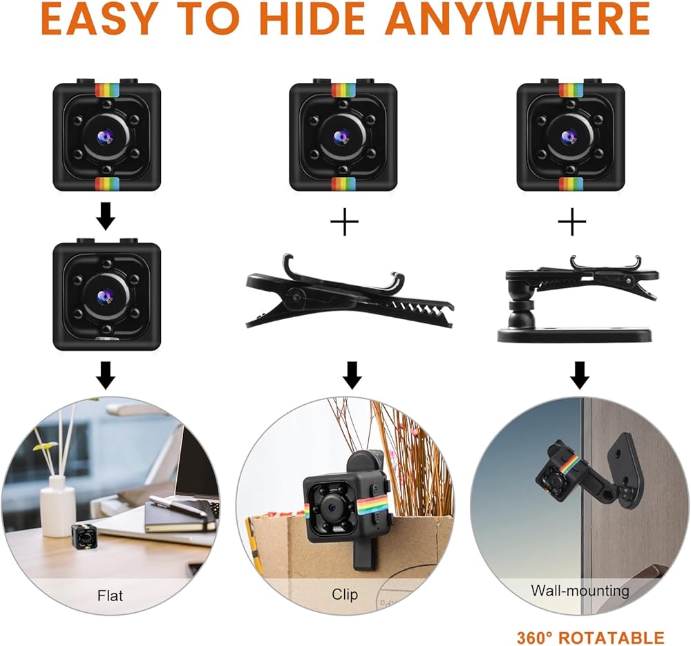 1080p FHD Video: التقاط كل التفاصيل مع دقة فيديو HD Mini Camera 1920 × 1080 ، مما يضمن لقطات بلورية حتى لا تفوتك أبدًا لحظة