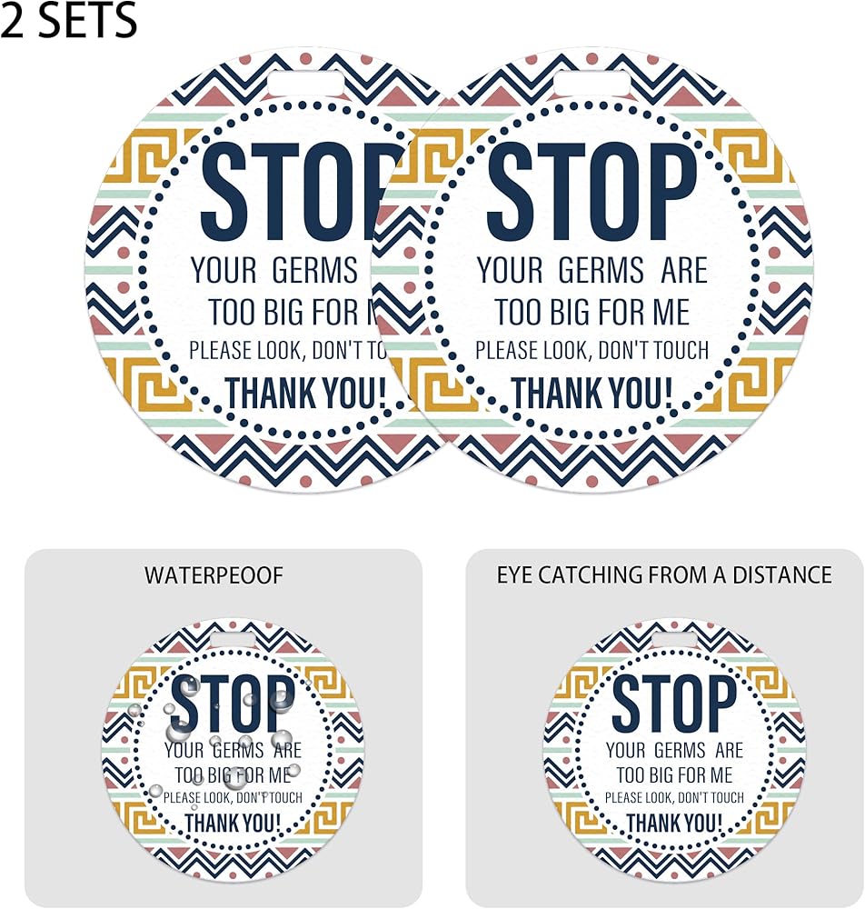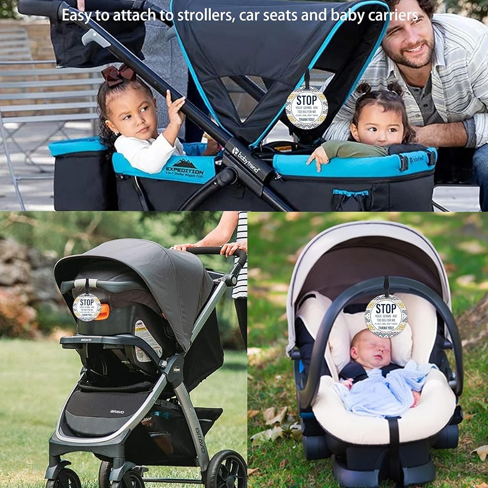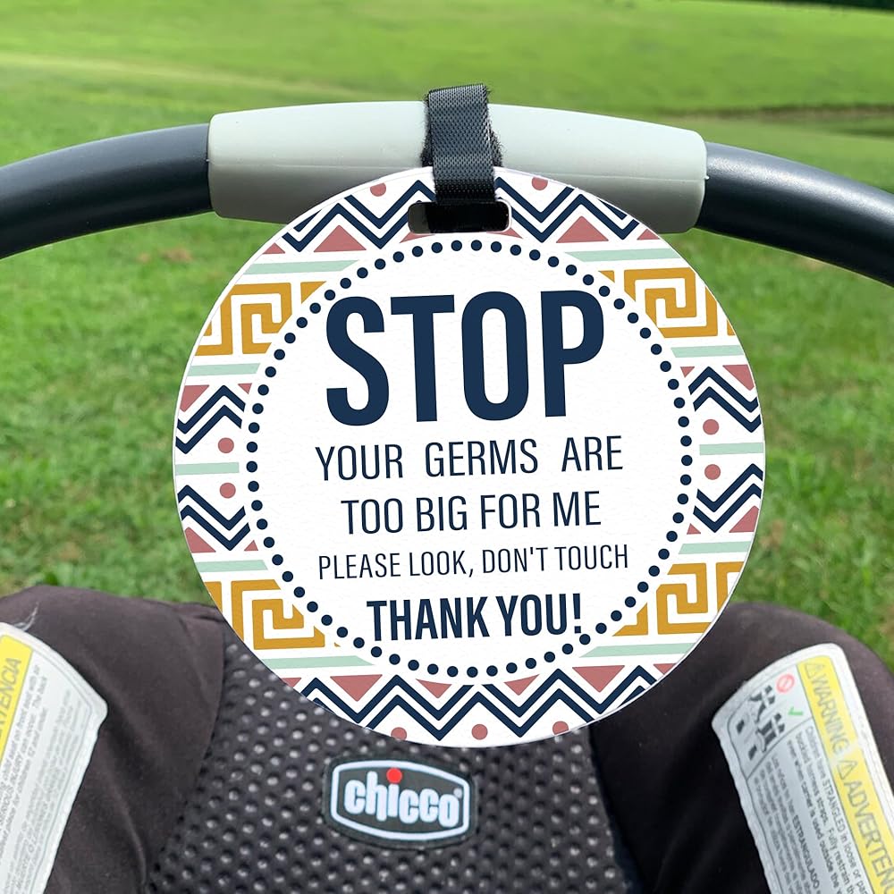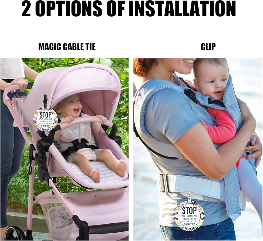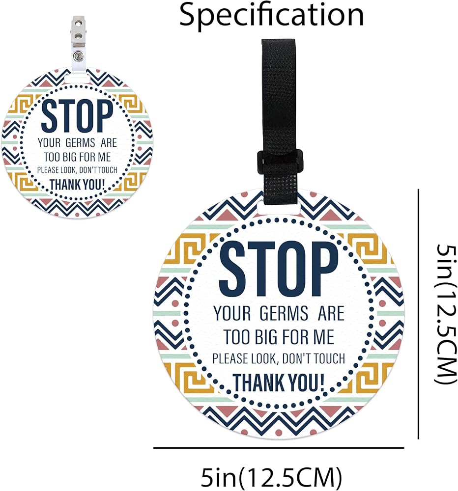 واضحة لا تلمس علامة الطفل: حجم علامة الطفل الملمس هو حوالي 5 × 5 بوصة / 12.5x12.5 سم ، والتي يمكن قراءتها بسهولة من مسافة بعيدة ؛ يمكن للنمط اللطيف ونص الطباعة الواضح أن يعبر بأدب عن رفضك للآخرين الذين يلمسون طفلك