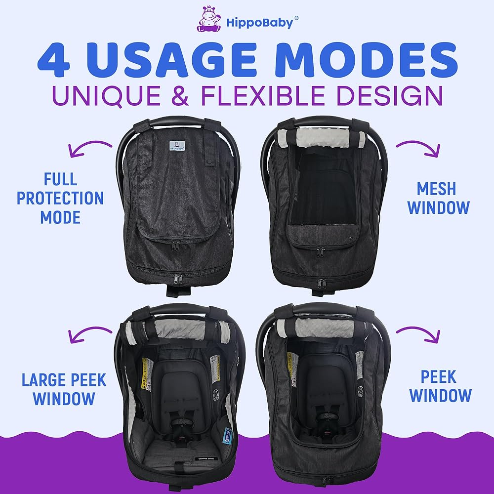 راحة البال - يوفر وضع التغطية الكامل لعضوية مقعد السيارة حديثي الولادة حاجزًا وقائيًا ضد مختلف العوامل البيئية ، وحماية طفلك من الشمس والرياح والأمطار الخفيفة. يساعد هذا الوضع من تغطية مقعد السيارة أيضًا على تقليل الانحرافات وإنشاء بيئة أكثر هدوءًا وخصوصية لطفلك عند الخروج. هذا مفيد بشكل خاص لتشجيع القيلولة أثناء التنقل وتقليل التفاعل غير المرغوب فيه من الغرباء. يساعد وضع نافذة Carseat Canopy الكامل المفتوح (الأكبر) على إخراج الطفل من مقعد السيارة بسهولة بالغة خاصة عندما يصبح الطفل أكبر.