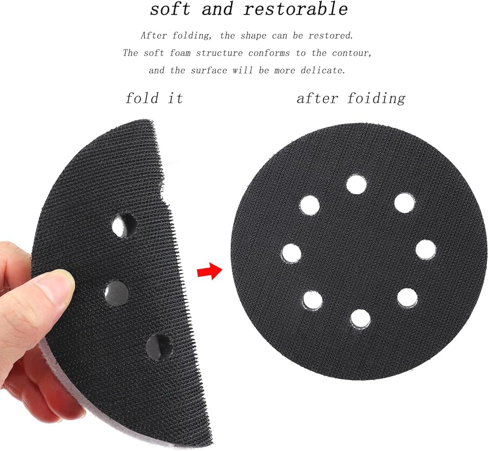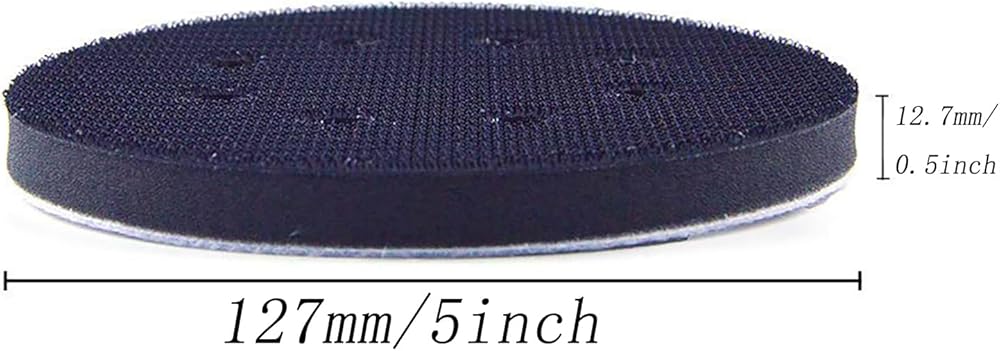 There will be 2pcs 5 inch 8 hole foam sanding pads in the package. This interface pad is used between the sandpaper and the rotary sanding wheel. Pad size:5 inch diameter, 0.55 inch thick.