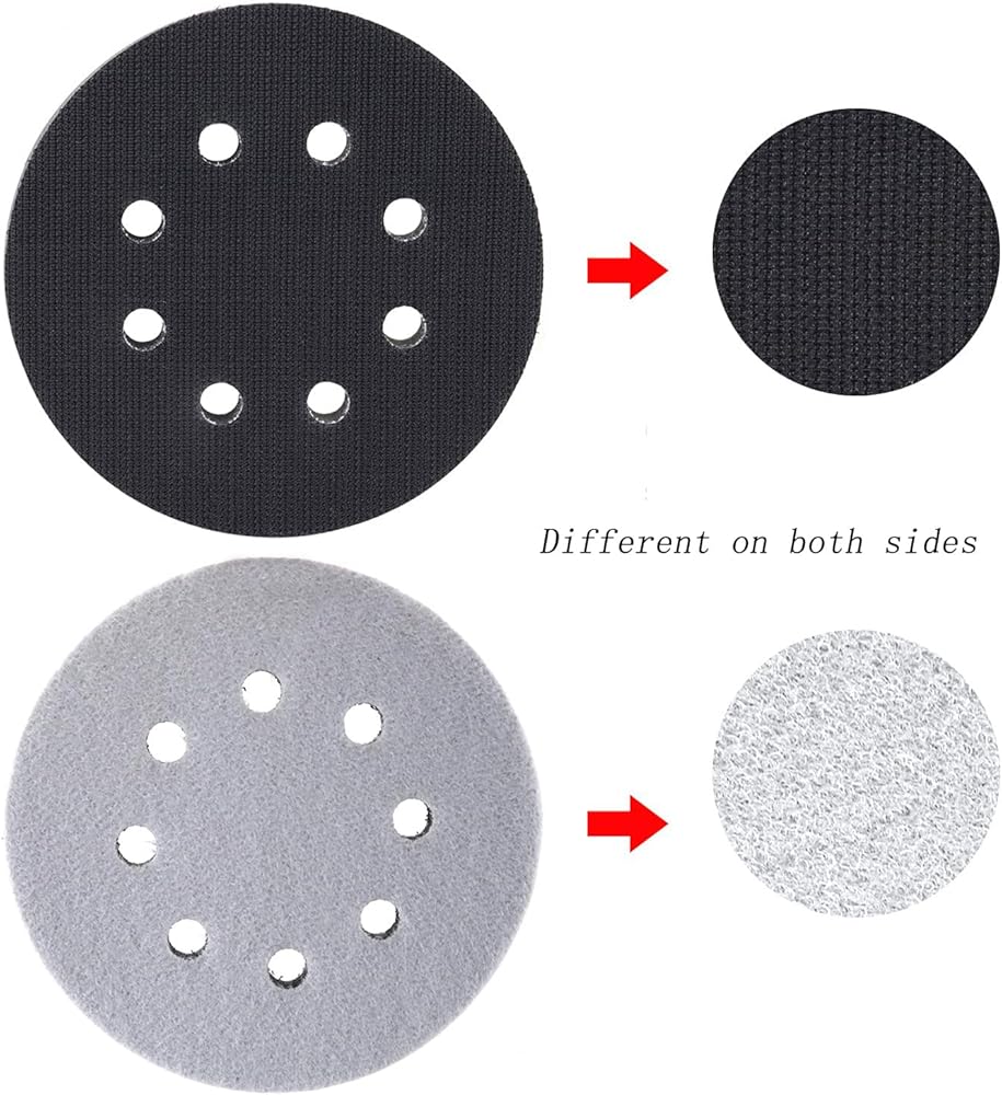 Hook and loop backing design:Black side sticks to the sanding disc, white side sticks to the sanding pad. Quick to install and remove, sanding pads can be replaced in seconds.