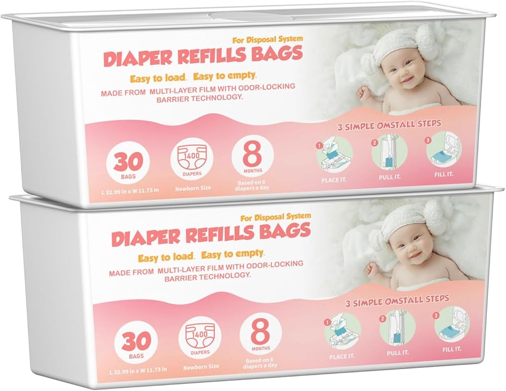 Ideal Solution: Each diaper pail refill cartridge contains 2 diaper pail refills (60 Bags). These convenient refill bags for baby, adult, elderly Senior diaper needs and even for your lovely pets. It is the easiest way to maintain a fresh, dry, and smell-free environment.
