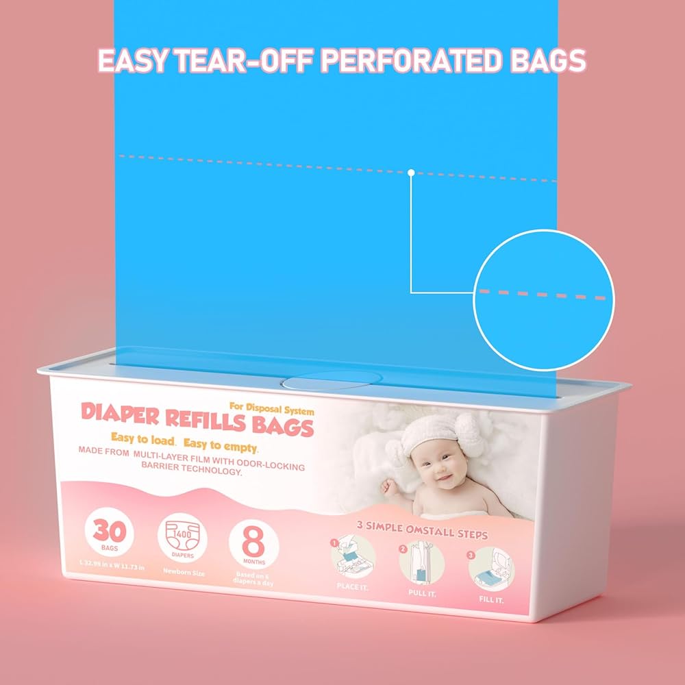 7-Layer Design: Our Diaper Pail Refills Bags are more tear resistant than other available bags, featuring a 7-layer barrier that can easily hold newborn diapers a true help to contain odors, keeping your home fresh and odor-free.
