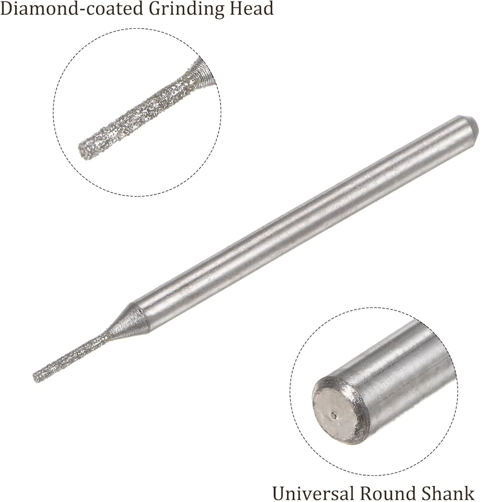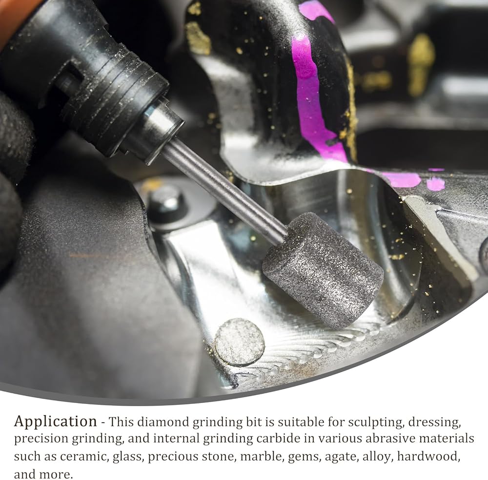 This diamond grinding bit is suitable for sculpting, dressing, precision grinding, and internal grinding carbide in various abrasive materials such as ceramic, glass, precious stone, alloy, and more. It can be used for polishing and engraving precision sanding, grinding glass, hardwood, marble, stone, ceramics, gems, agate, and even hard metals like iron and silver.