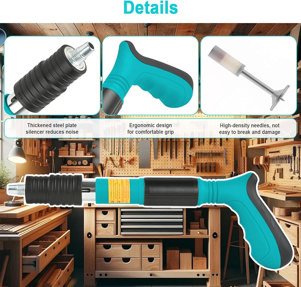 بندقية مسمار الصلب المزدوج: تثخن غطاء كاتم الصوت لتقليل الضوضاء ؛ مجرد الضغط والإفراج ، لا يستغرق الأمر سوى 1 ثانية ؛ لا كهرباء مطلوبة. جعل البناء أكثر راحة دون إزعاج السكان