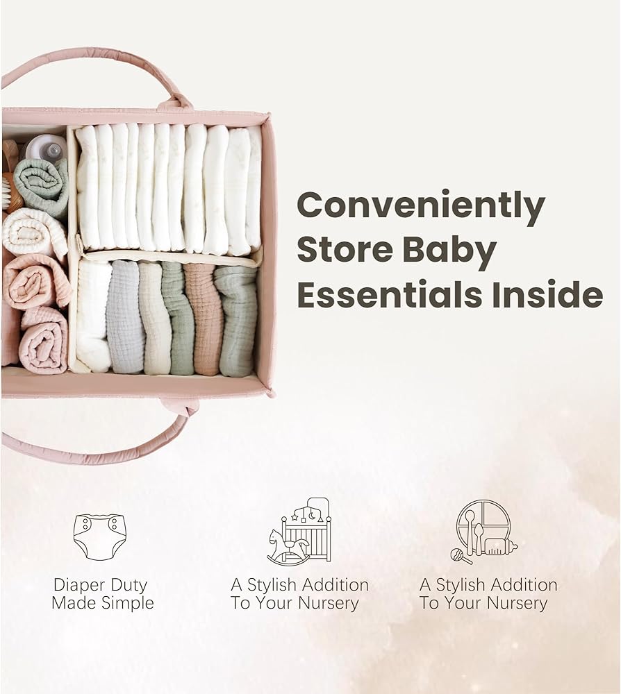 Ideal for Boys and Girls: The baby caddy is designed to suit both boys and girls. With its neutral design, it's the perfect baby diaper caddy for organizing your baby's items in style and convenience