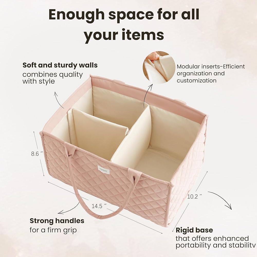 Spacious with Removable Dividers: With removable dividers, the diaper caddy helps you organize diapers, wipes, and other essentials. This customizable baby caddy organizer is perfect for keeping everything neat and easy to find