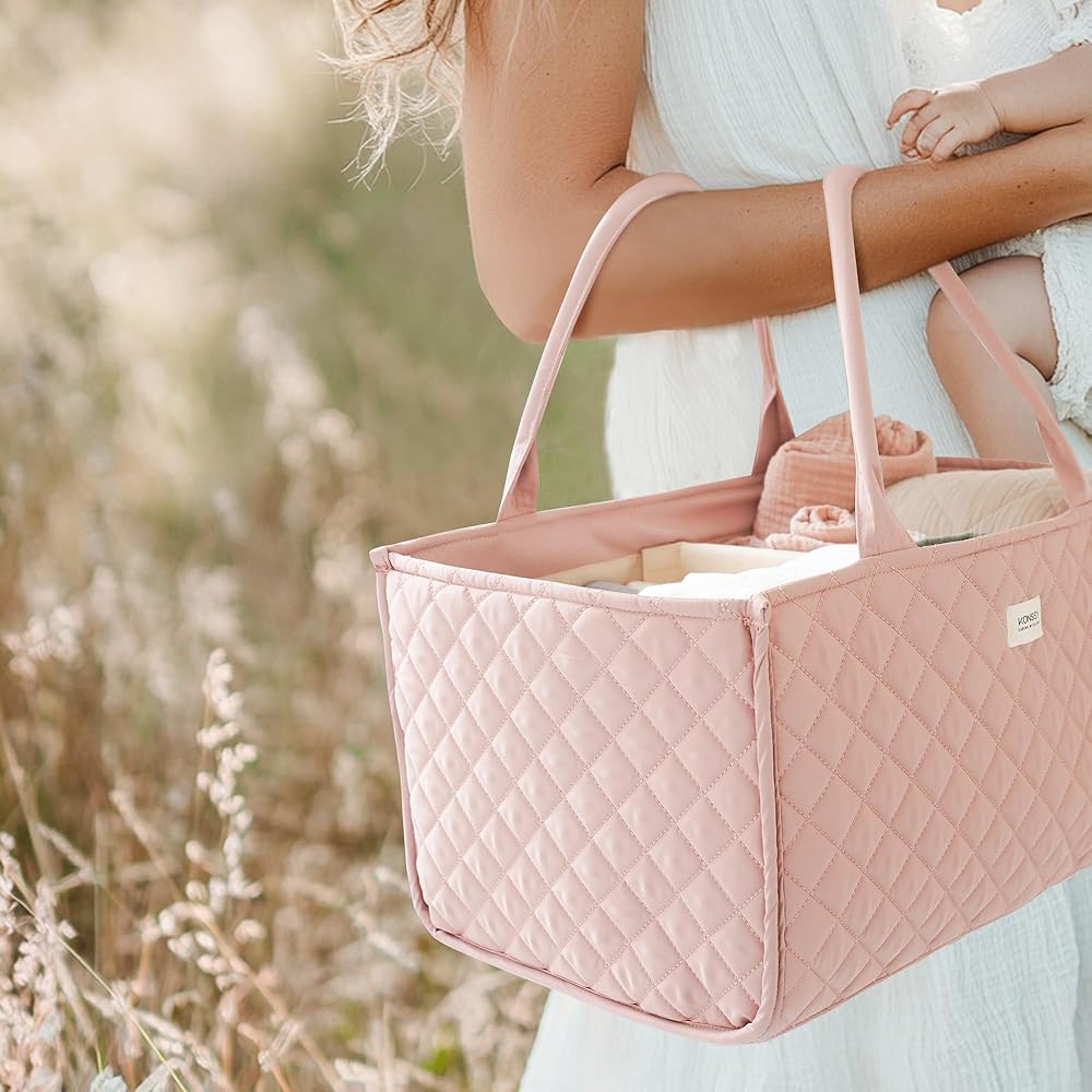 Chic and Practical Diaper Caddy: With a modern design and trendy pink color scheme, this diaper organizer adds a stylish touch to your nursery. It's perfect for your changing table or any corner of the room, making it an essential item for your baby registry