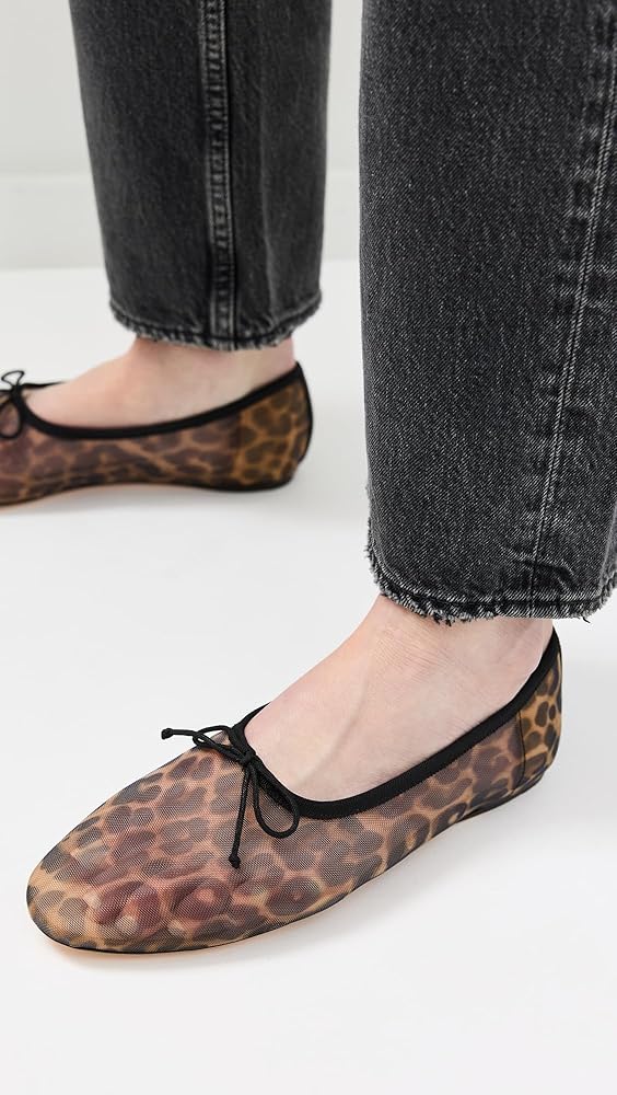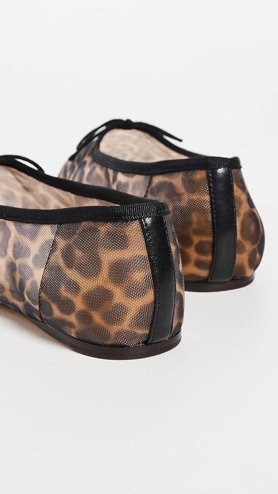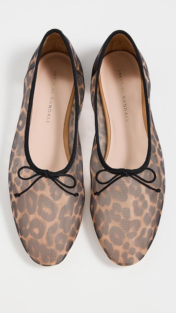 - Leopard print, Webbing trim with bow at vamp, Leather footbed