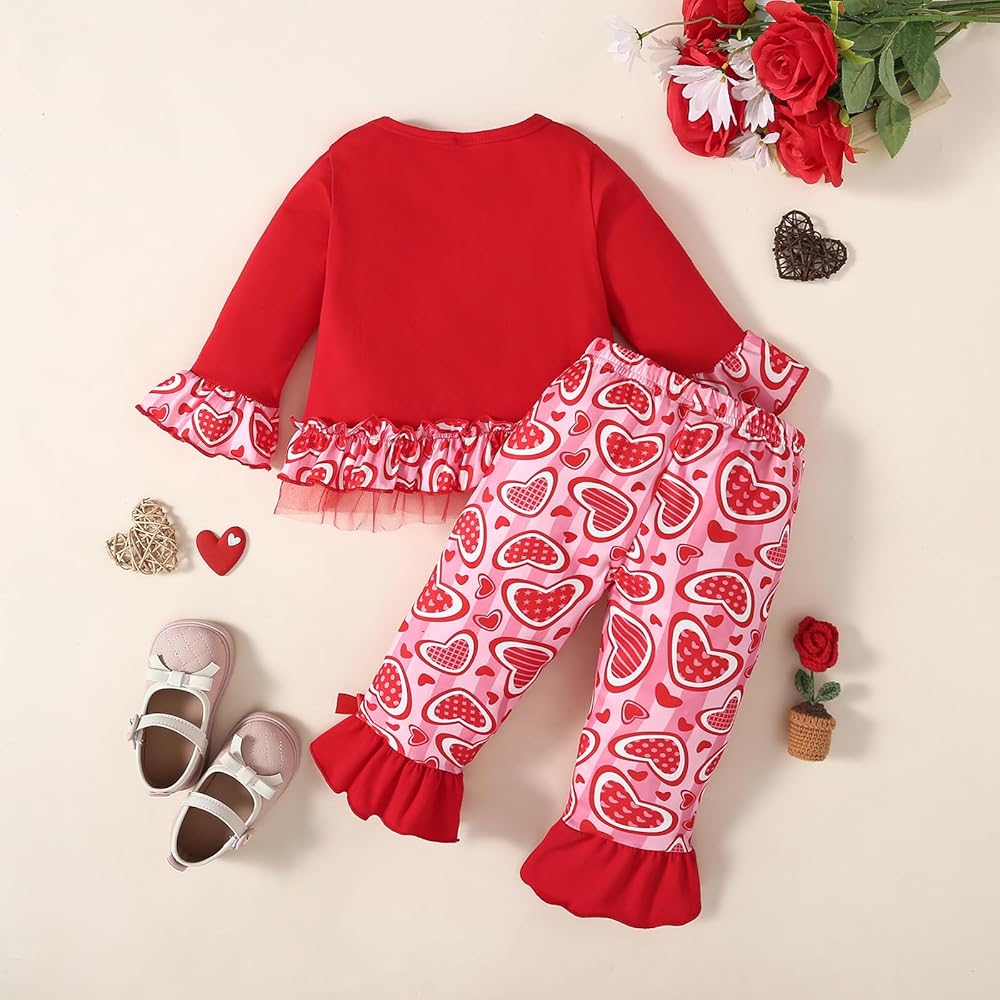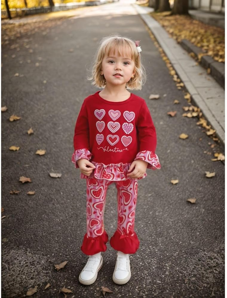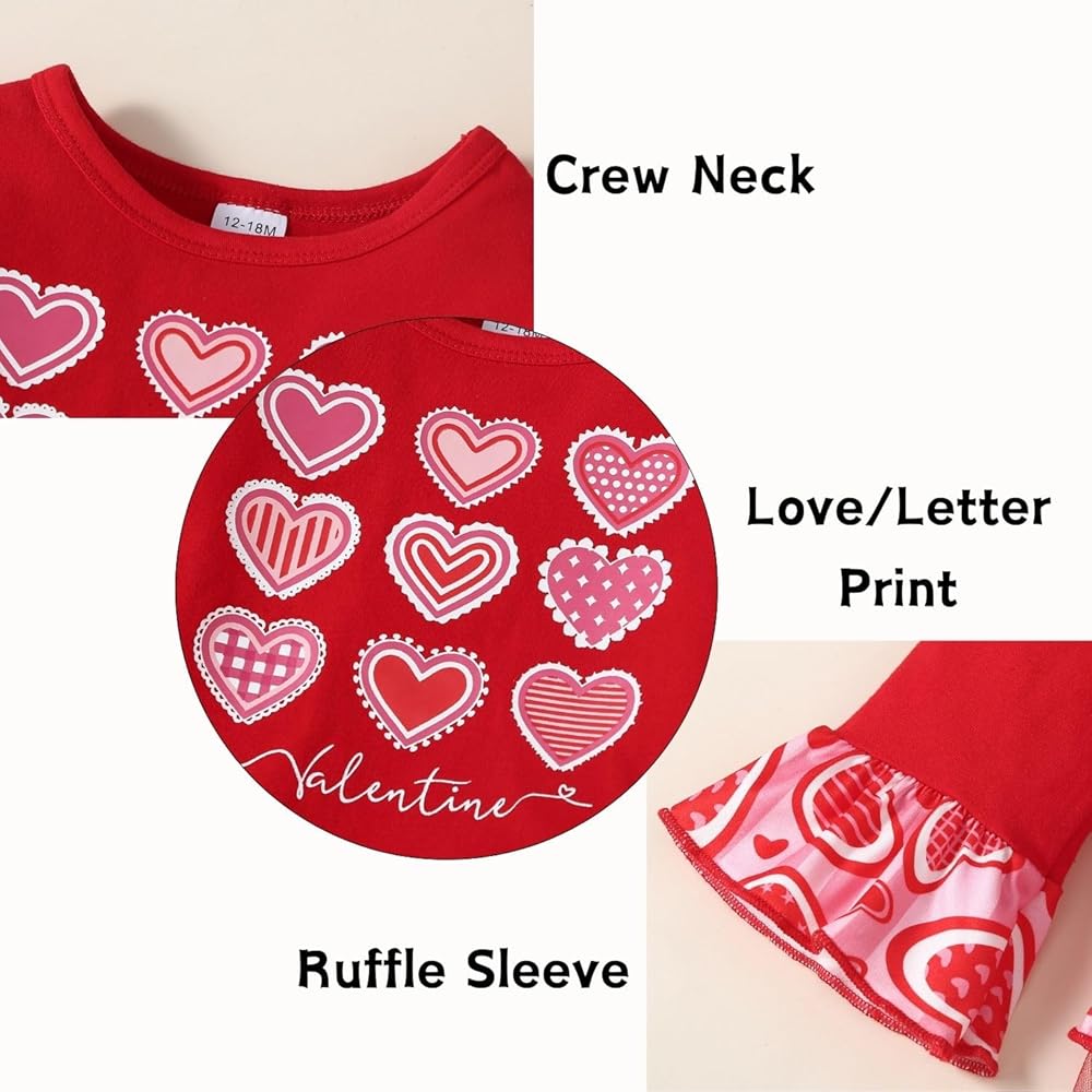 [Meterial]: أزياء فتاة صغيرة الفتاة عيد الحب ، مصنوعة في مواد مزيج من القطن الناعمة ، والامتصاص العالي والتنفس ، لا ضرر لبشرة طفلك.