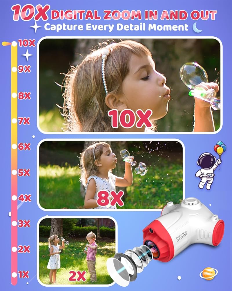 • 10x Zoom للحصول على لقطات مثالية: مع تكبير الكاميرا المثيرة للإعجاب من الكاميرا المثيرة للإعجاب ، يمكنك التقاط لحظات مذهلة ، حتى من مسافة بعيدة. ساعد المصورين الشباب على استكشاف إمكاناتهم الكاملة والتقاط صور لا تنسى