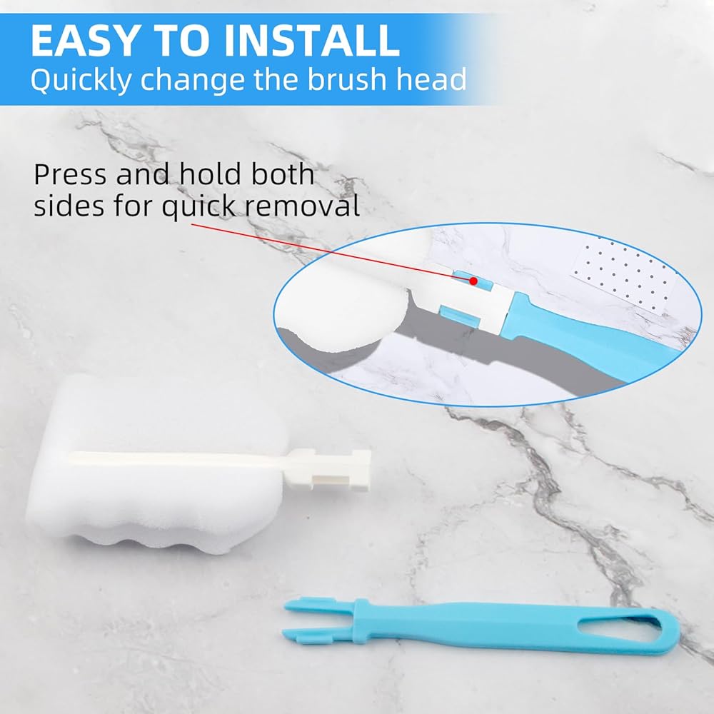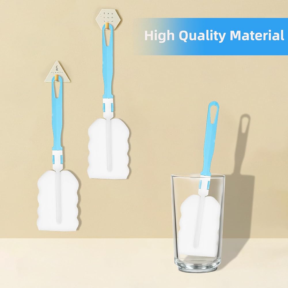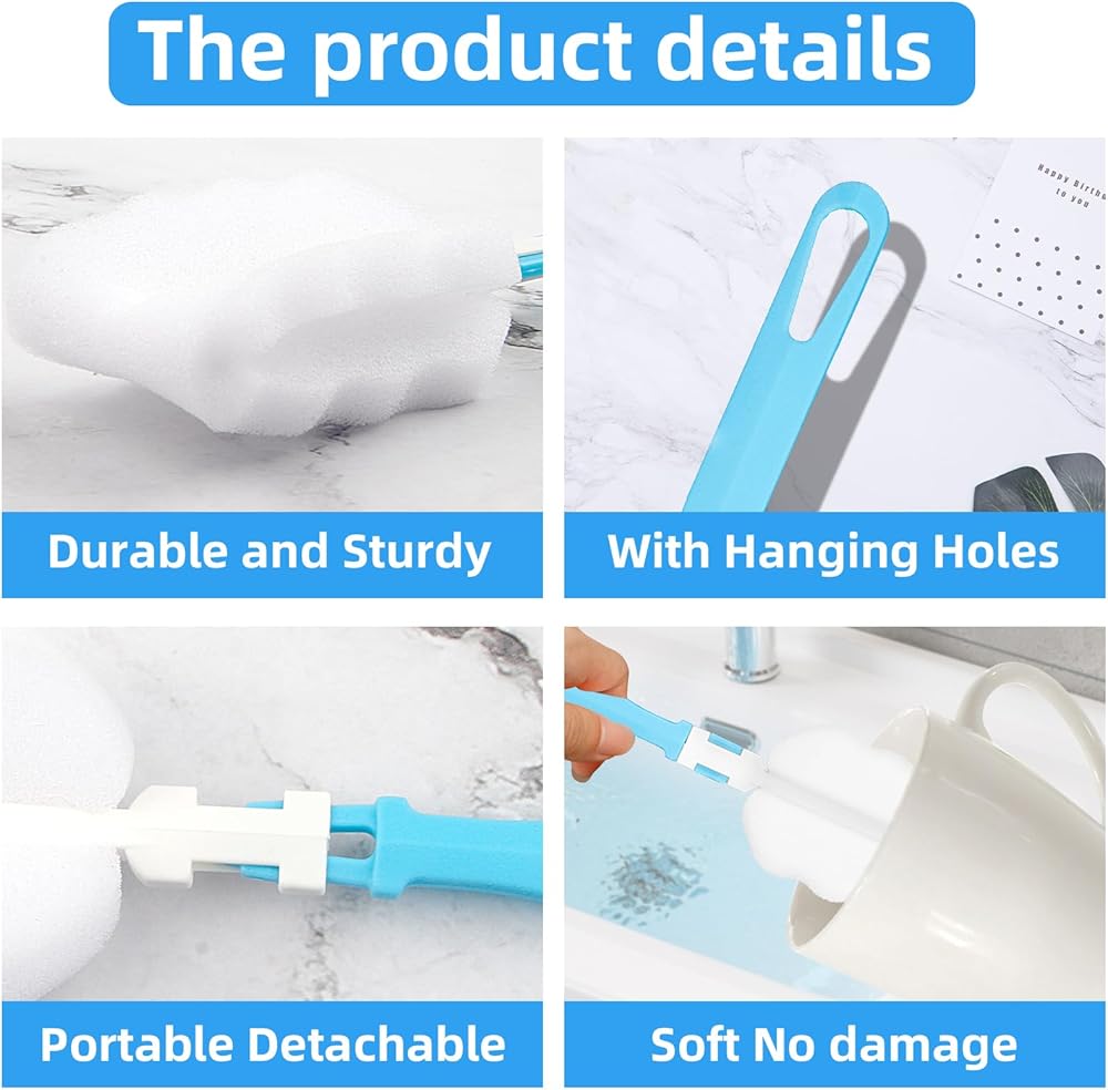 Soft Sponge: These bottle washer set heads are made of high-quality high-density sponge material with stronger water absorption, soft and will not scratch the cup. All cleaning brushes are made of Sponge and plastic materials, it's so safe for babies to use. Suitable for plastic, glass, stainless steel and ceramic cups.Bottle Brush