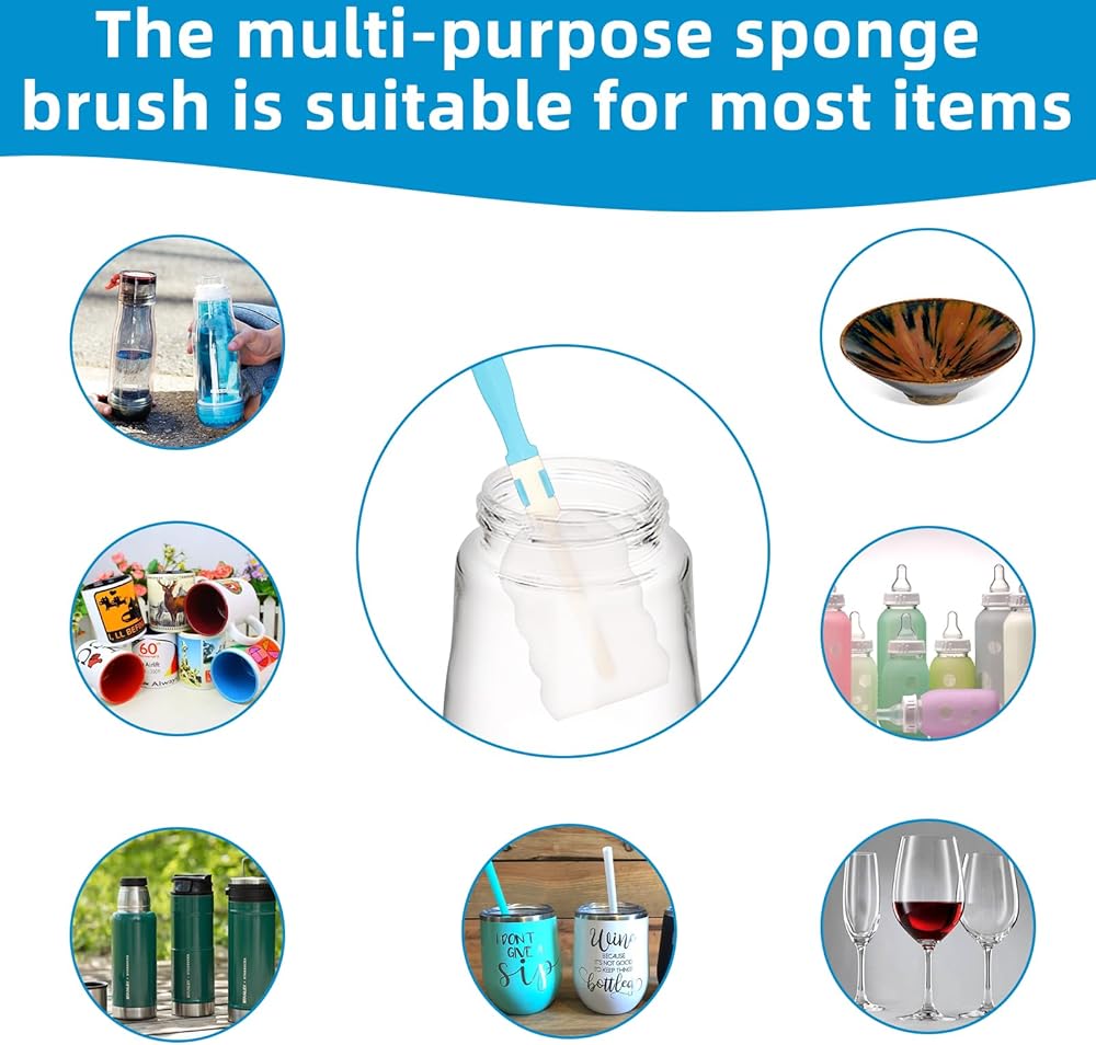 Multipurpose: A practical life tool, soft and fluffy sponge has a strong cleaning ability, which can help you better complete the cleaning work. It is suitable for different container surfaces, such as the cleaning goblet, Mug, Baby Milk bottle, vacuum cup, kettle, etc
