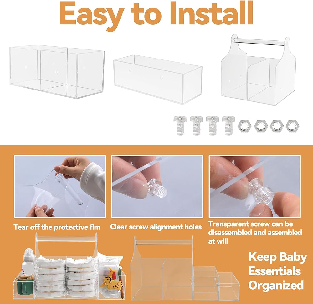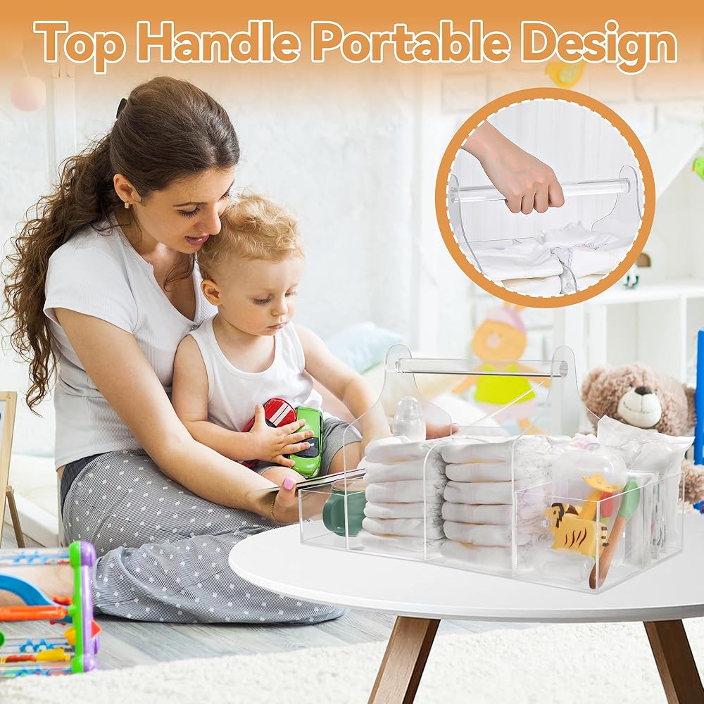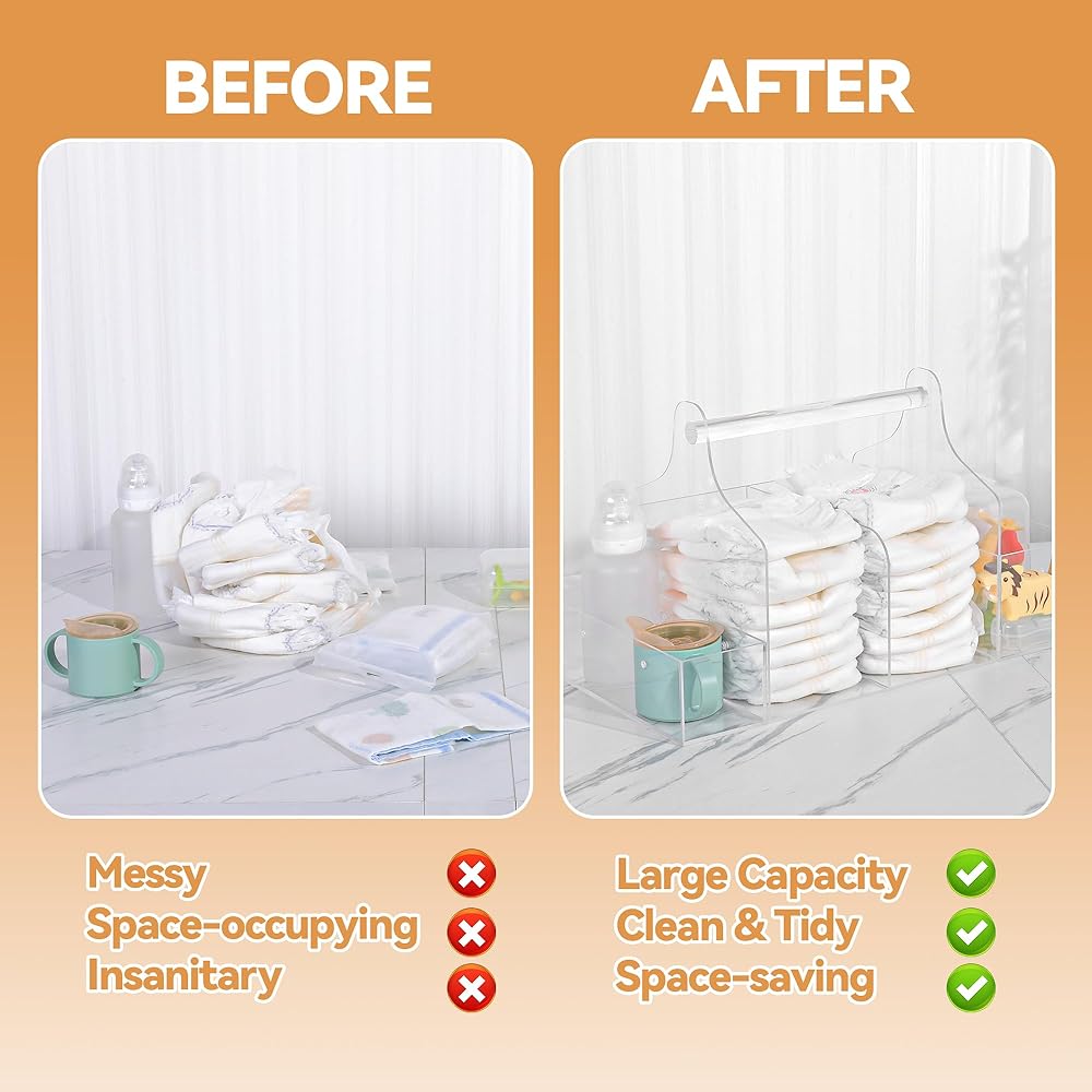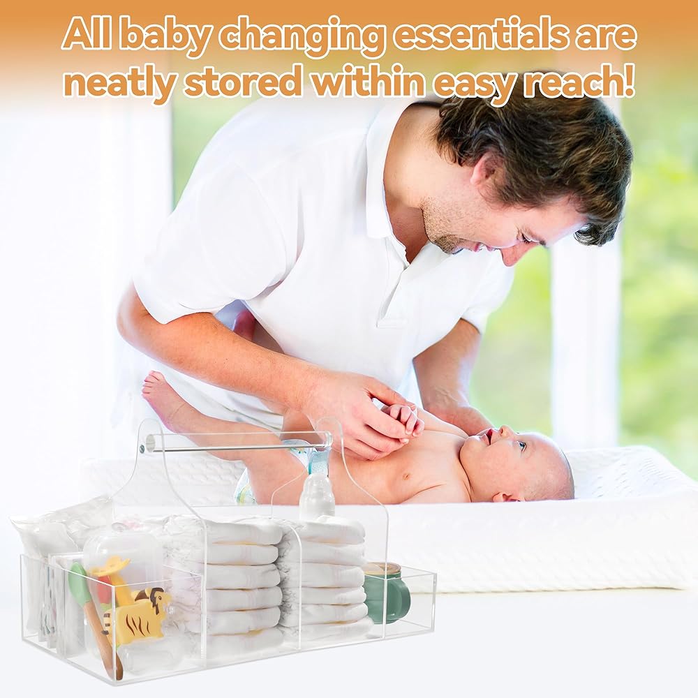 caddy حفاضات أكريليك قوية】: منظم الحفاضات مصنوع من الأكريليك عالي الجودة ، قوي ودائم. يتيح لك منظم الحفاضات الشفافة رؤية كل الأشياء الخاصة بك في لمحة وإيجادها بسرعة. إنها المادة المثالية التي يجب استخدامها كمنظم طاولة تغيير لمرافقة نمو طفلك.