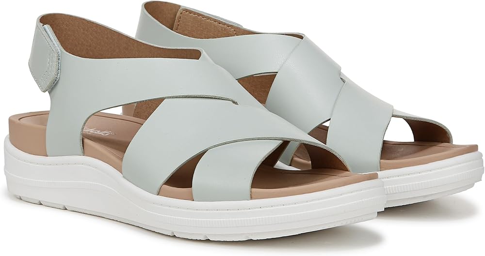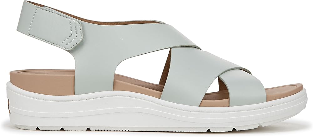 A womens sport sandal inspired by our best-selling Time Off sneaker. SUSTAINABLY CRAFTED: Linings made from low-chemical faux leather. MATERIALS: Faux leather upper. FIT: Heel strap with adjustable hook-and-loop closure for secure fit. FEELS: Insole Technology with molded EVA footbed, cushioning, comfort, & arch support. MOVEMENT: Lightweight, flexible construction moves with you. STYLE: Slingback sandals for women with thick crisscross straps, molded EVA footbed, 1 1/3 inch wedge heel including 3/4 inch platform on a grippy sport sole. CONSCIOUSLY PACKAGED: This style is shipped in an environmentally preferred 1-piece box made with primarily recycled materials that can be recycled & soy-based inks. Strap happy. Vacay-ready beach shoes with all-day comfort to take the scenic route.