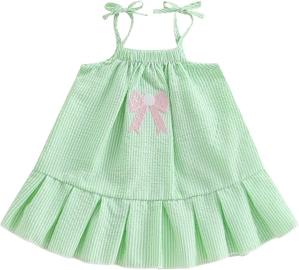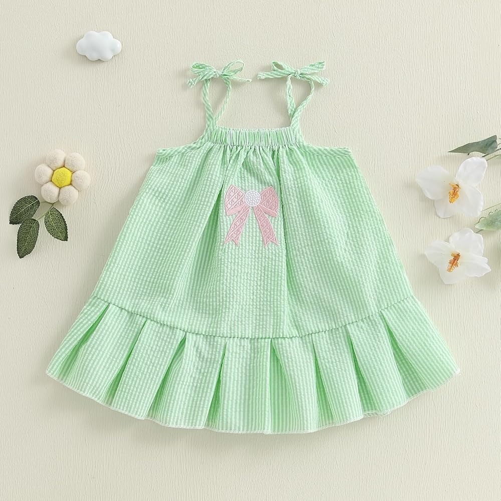 Baby Girls Baseball Dress Toddler Seersucker Dress Sleeveless Baseball Bat Embroidery Sundress Stripe Sling Summer Causal Outfit