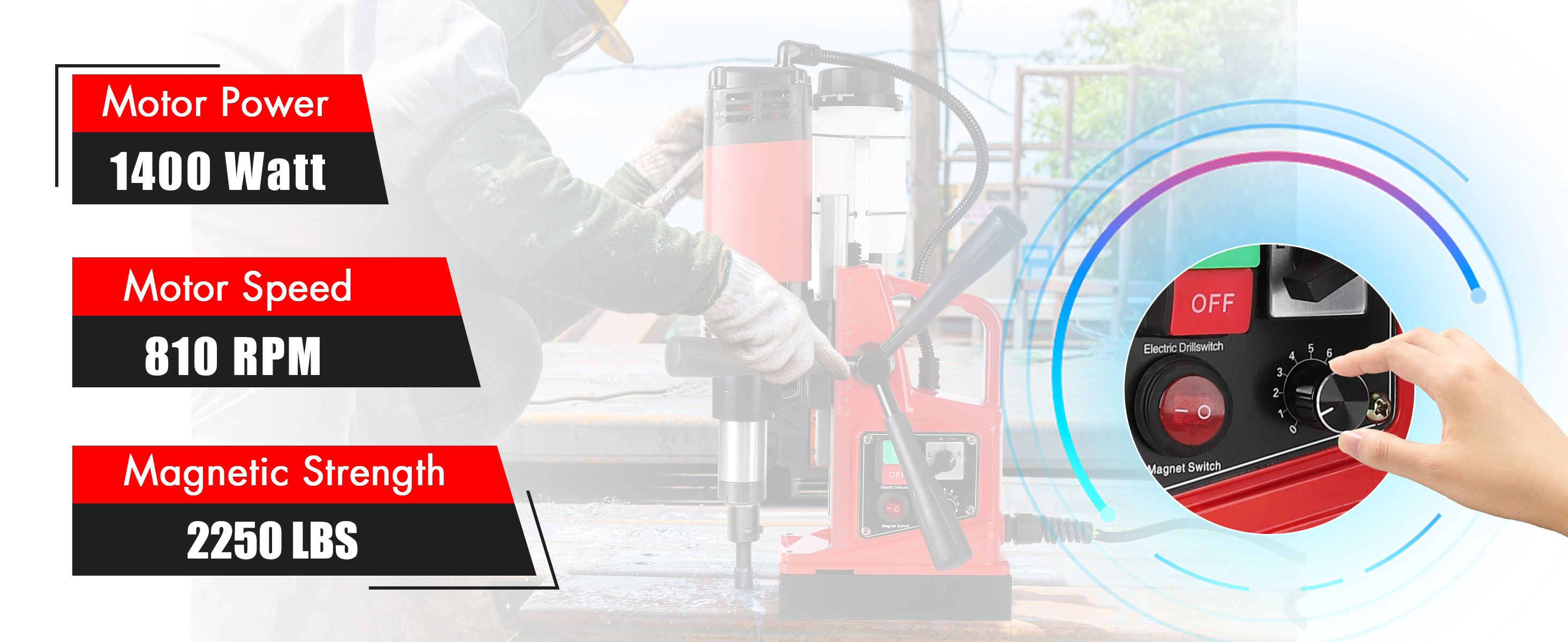 الأداء القوي: مع محرك قوي 1100 واط وقطر ممل بحجم 1.6 بوصة ، توفر مطبعة Mag Drill هذه القوة والكفاءة الفائقة ، مما يجعلها مثالية لمعالجة أصعب مهام الحفر.