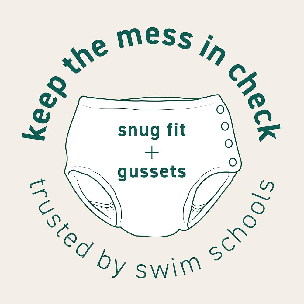 SECURE, LIGHTWEIGHT, AND COMFORTABLE SWIM DIAPER ENCOURAGES SWIMMING—Baby will move freely during swim lessons without feeling weighed down. No bulky fabric and extra snaps, our baby swim diaper is cute enough to wear alone, but slim enough to wear under a standard baby swimsuit.