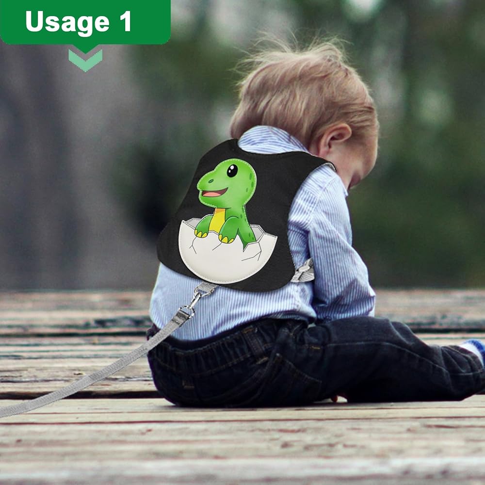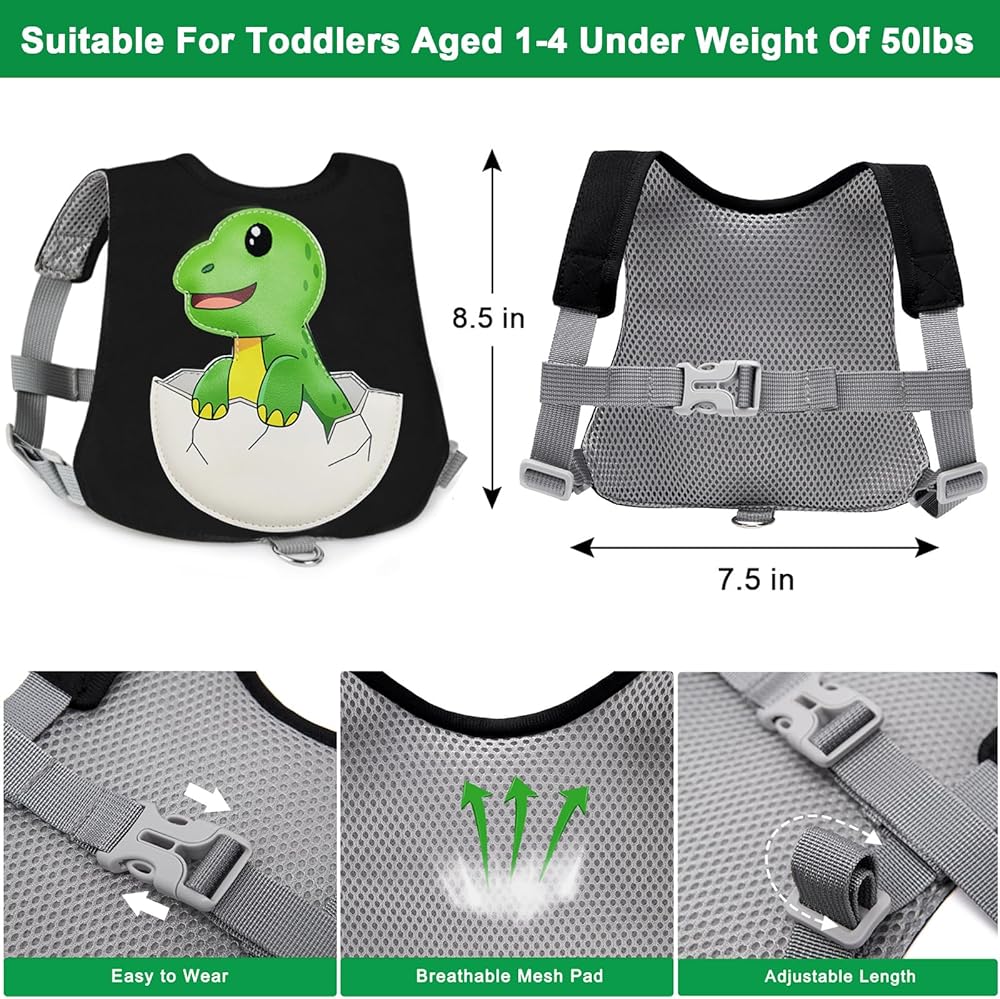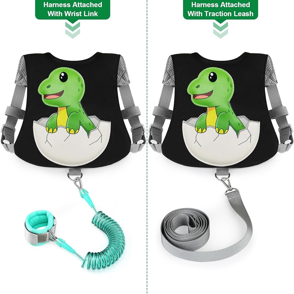 Accmor Toddler Leash Harness ، Dinosaur Child لطيف تسخير Baby Leases + Lost Lost List Link ، أطفال تسخير حزام مساعد المشي حبل حزام لمدة 1-4 سنوات الأولاد للبنات للسفر والخارجية (أسود)