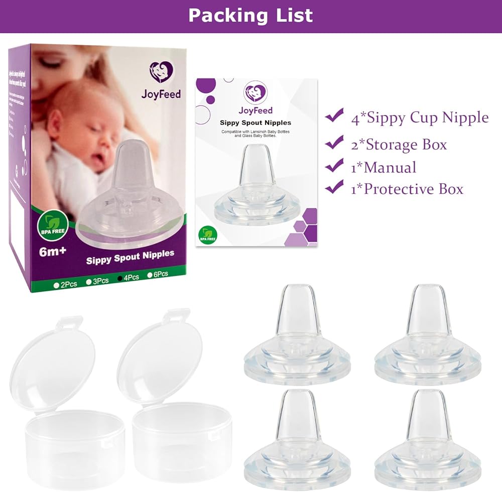 حلمات Sippy Spout لزجاجات Baby Lansinoh ، وحلمات كوب سيليكون ناع
