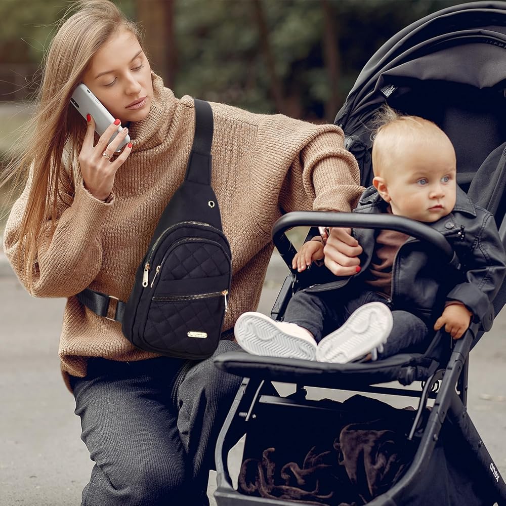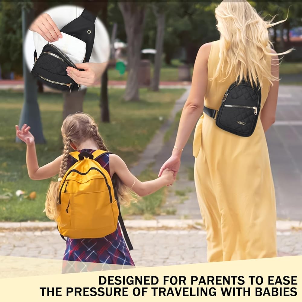 With its mini size and large capacity, this small crossbody diaper backpack is designed for carrying your essentials when going out.