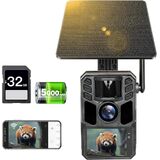 كاميرا تريل 4K 64 ميجابكسل تعمل بالطاقة الشمسية واي فاي لعبة صيد مع رؤية ليلية - بطارية مدمجة 5000 مللي أمبير في الساعة، IP67 مقاومة للماء، منشطة بالحركة، بطاقة 64 جيجابايت